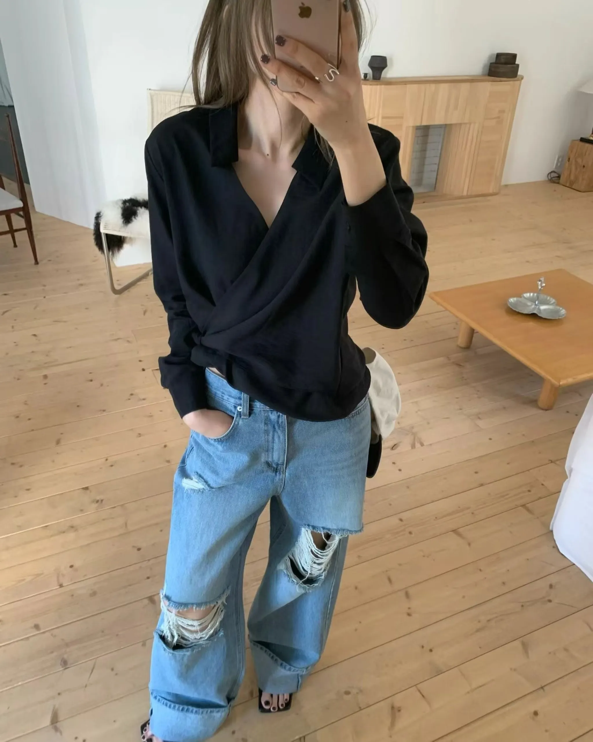 雙口袋靴鬆牛仔褲