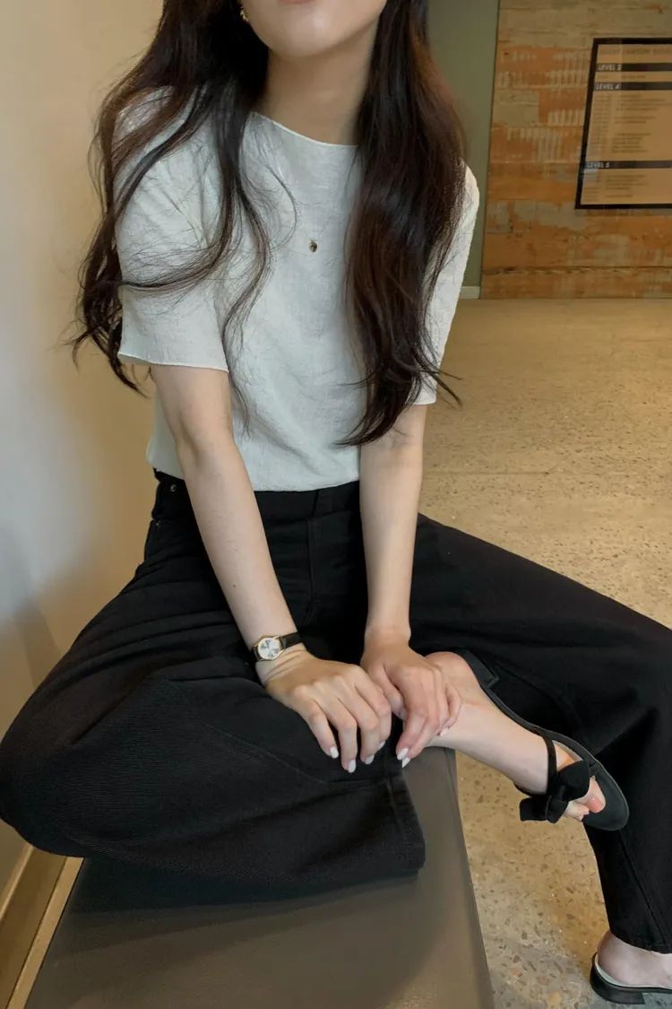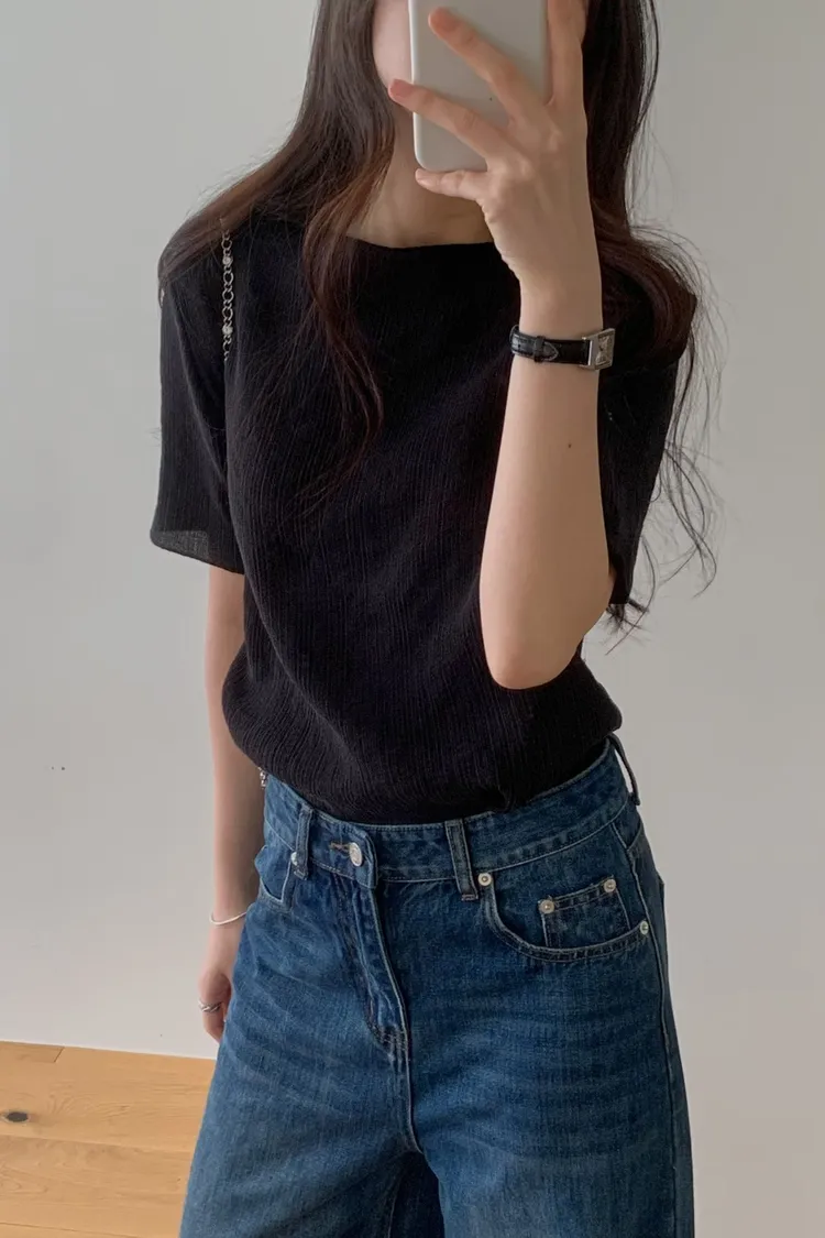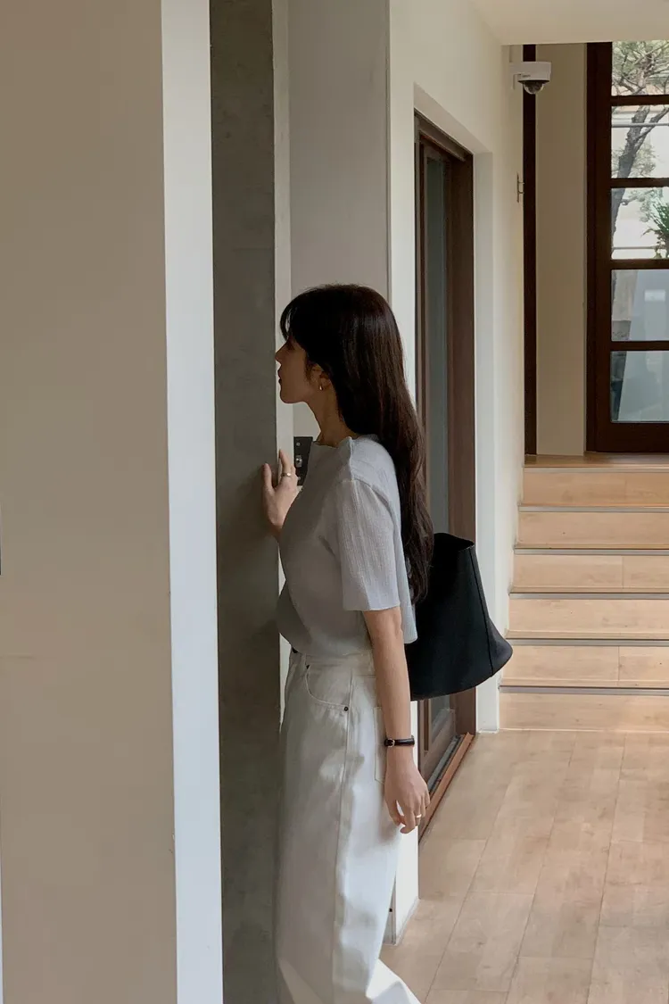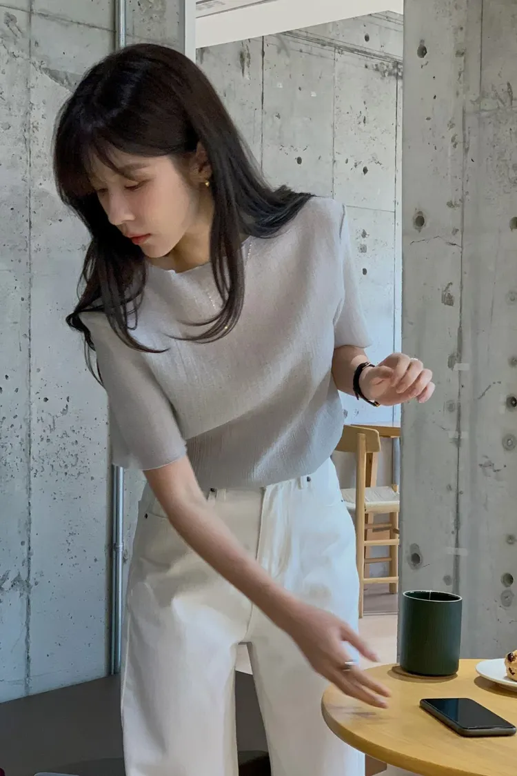 細膩垂直壓紋:布料自帶微細的直條紋理,視覺上非常顯瘦,且增加了整體的層次感,完全不顯單調 透霧空氣感:微透的材質帶有一種若隱若現的優雅,內搭一件同色系背心,就能穿出那種毫不費力的法式慵懶 修身五分袖:長度剛好蓋過手臂最肉的地方,圓領剪裁順著頸部線條,簡約卻極具細膩度