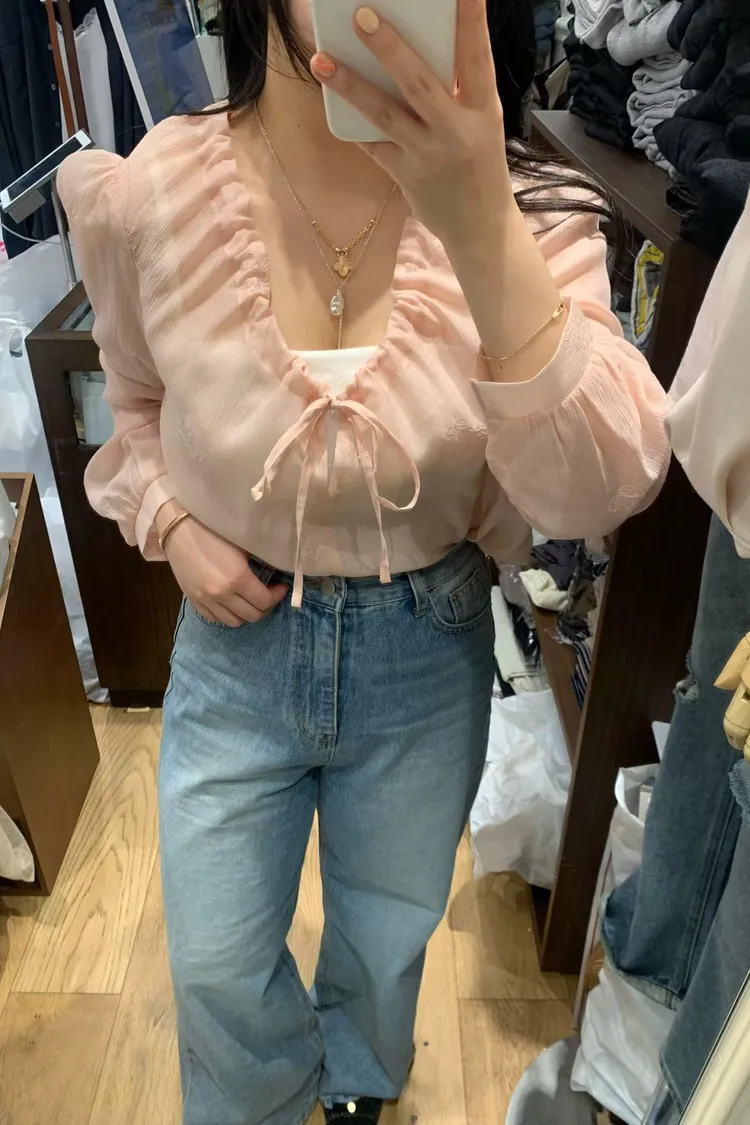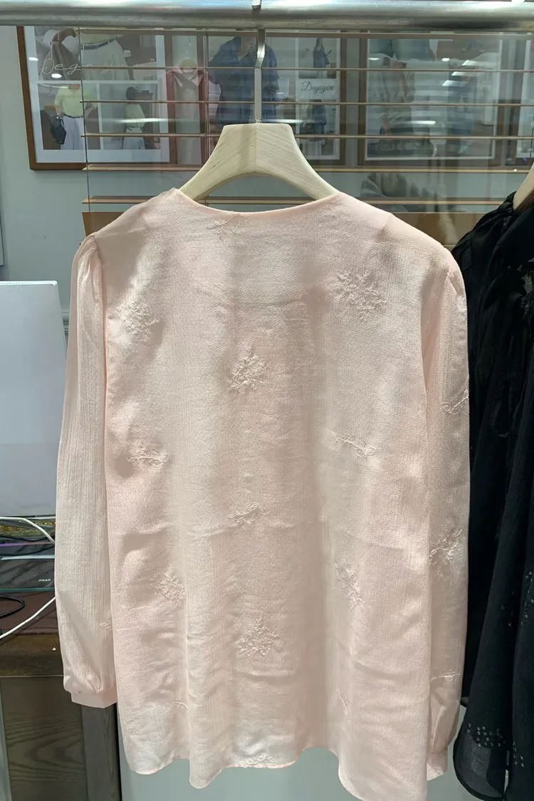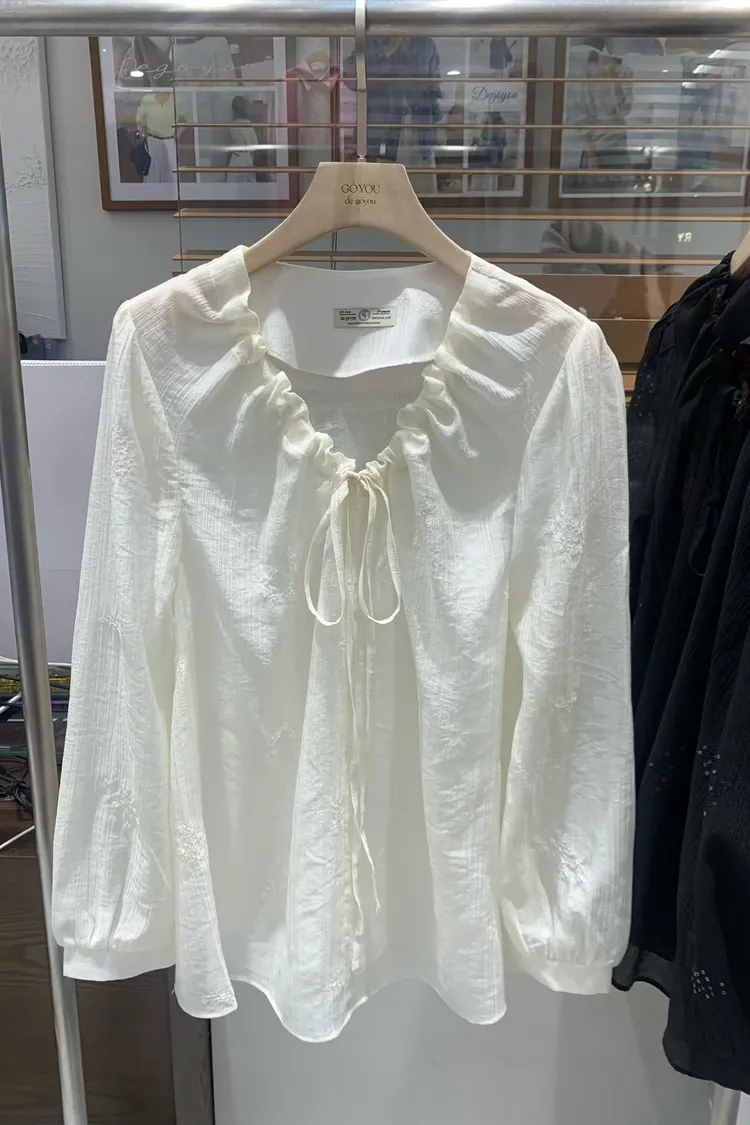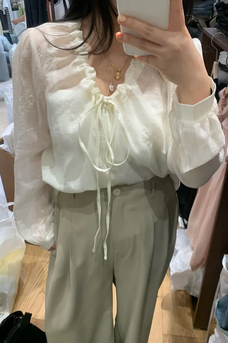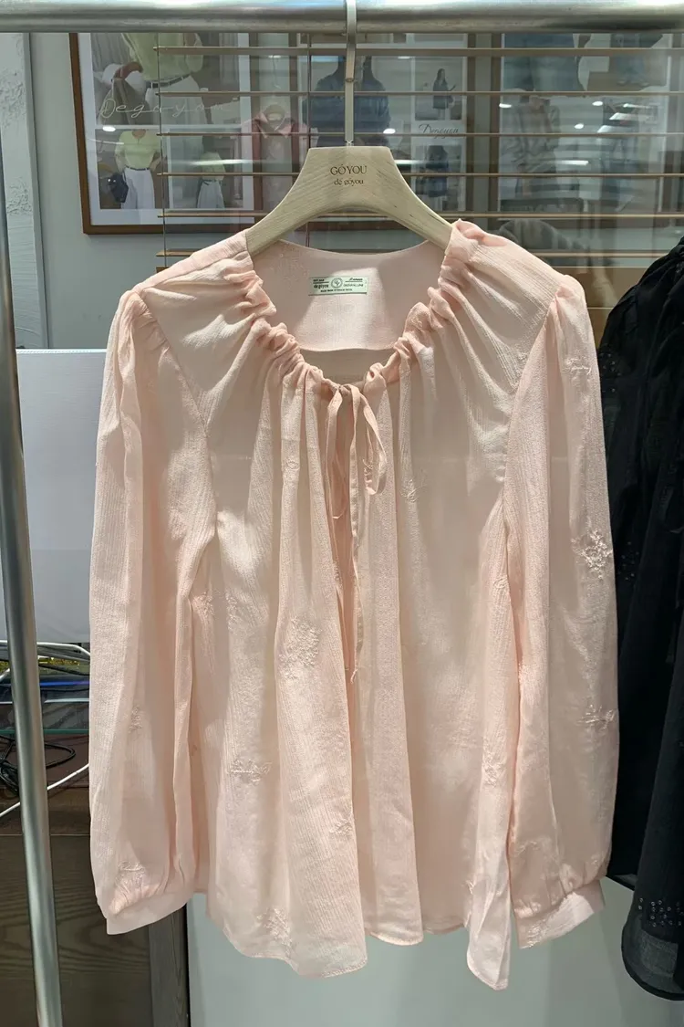 如果妳在找一件「有細節、不單調」的白上衣或襯衫,就是它了! 這款的布料非常厲害,上面滿佈著同色系的浮雕感小花刺繡,近看質感滿分,遠看則是充滿層次的微光感 ✨ 妳不能錯過的細膩亮點: 領口抽褶設計:自然的褶皺延伸出優雅的頸部線條,搭配蝴蝶結綁帶,帶點法式甜美卻不失大人感 微透空氣布料:選用親膚且輕盈的材質,讓深色的黑也能穿出清爽度,白與粉更是仙氣十足 精緻收口袖:微澎的袖型在手腕處輕輕收攏,修飾手臂效果極佳,展現出一種隨性卻精緻的氛圍