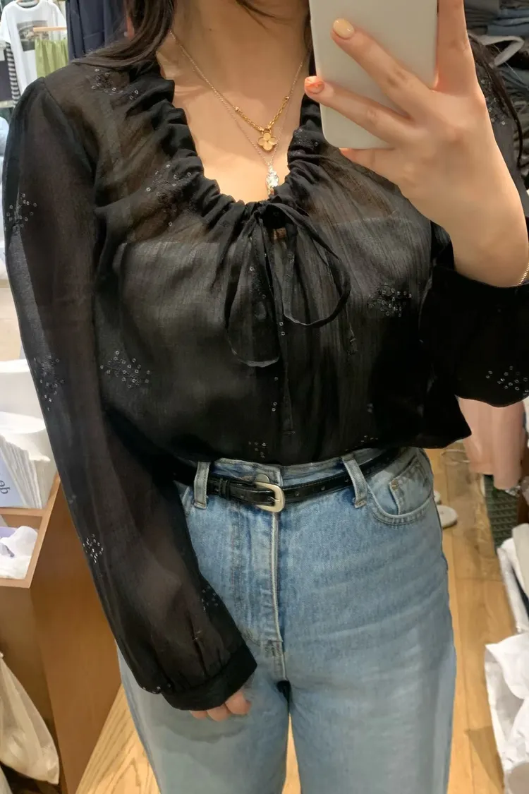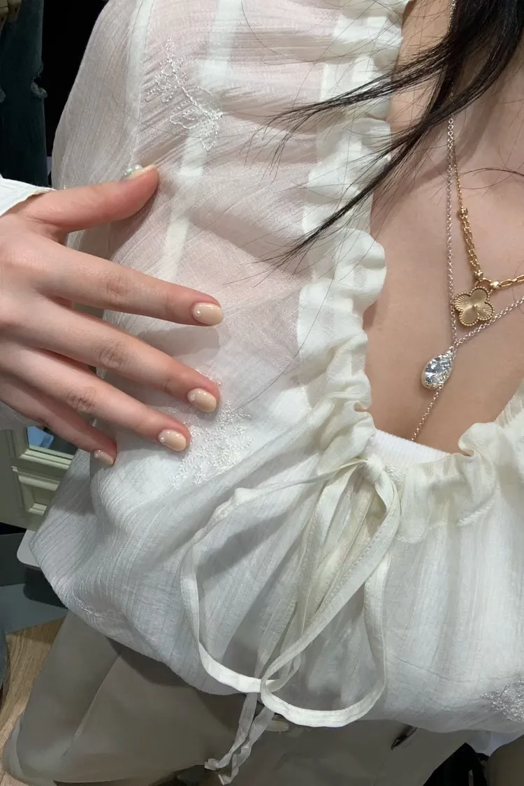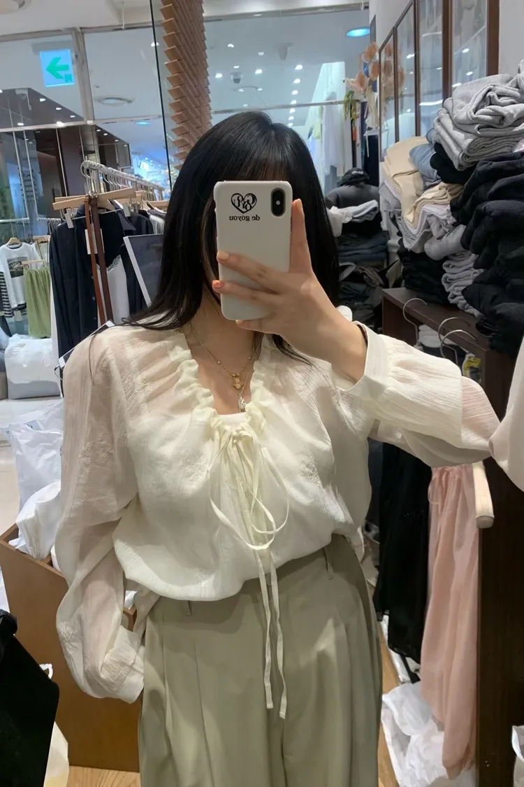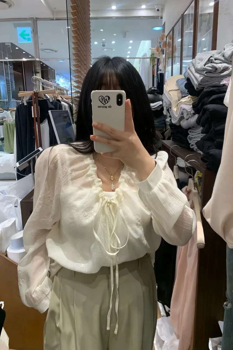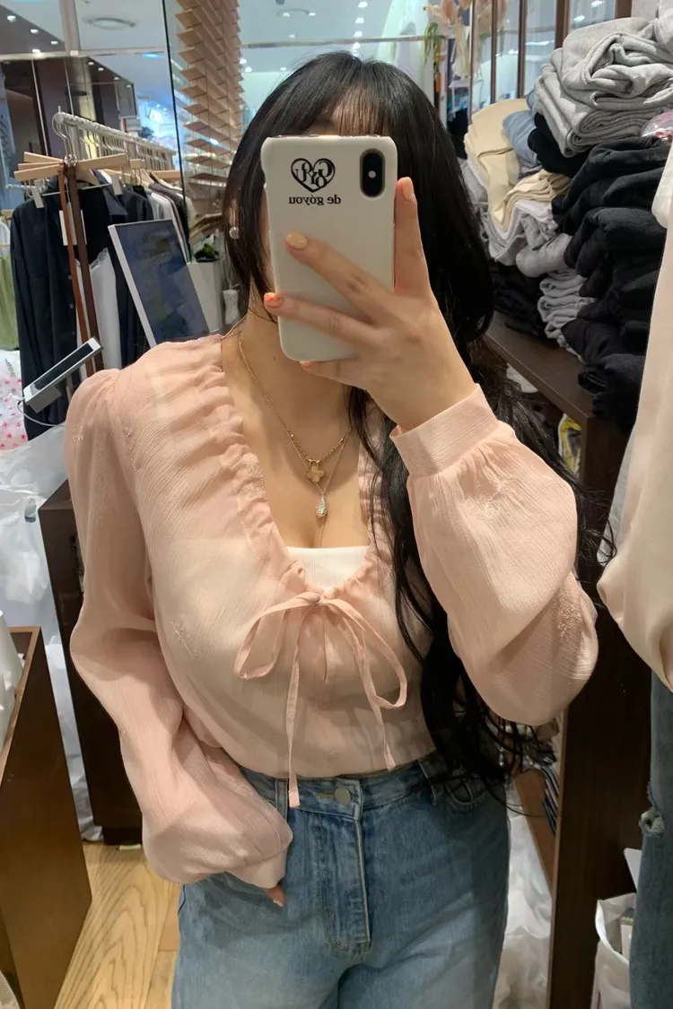 如果妳在找一件「有細節、不單調」的白上衣或襯衫,就是它了! 這款的布料非常厲害,上面滿佈著同色系的浮雕感小花刺繡,近看質感滿分,遠看則是充滿層次的微光感 ✨ 妳不能錯過的細膩亮點: 領口抽褶設計:自然的褶皺延伸出優雅的頸部線條,搭配蝴蝶結綁帶,帶點法式甜美卻不失大人感 微透空氣布料:選用親膚且輕盈的材質,讓深色的黑也能穿出清爽度,白與粉更是仙氣十足 精緻收口袖:微澎的袖型在手腕處輕輕收攏,修飾手臂效果極佳,展現出一種隨性卻精緻的氛圍
