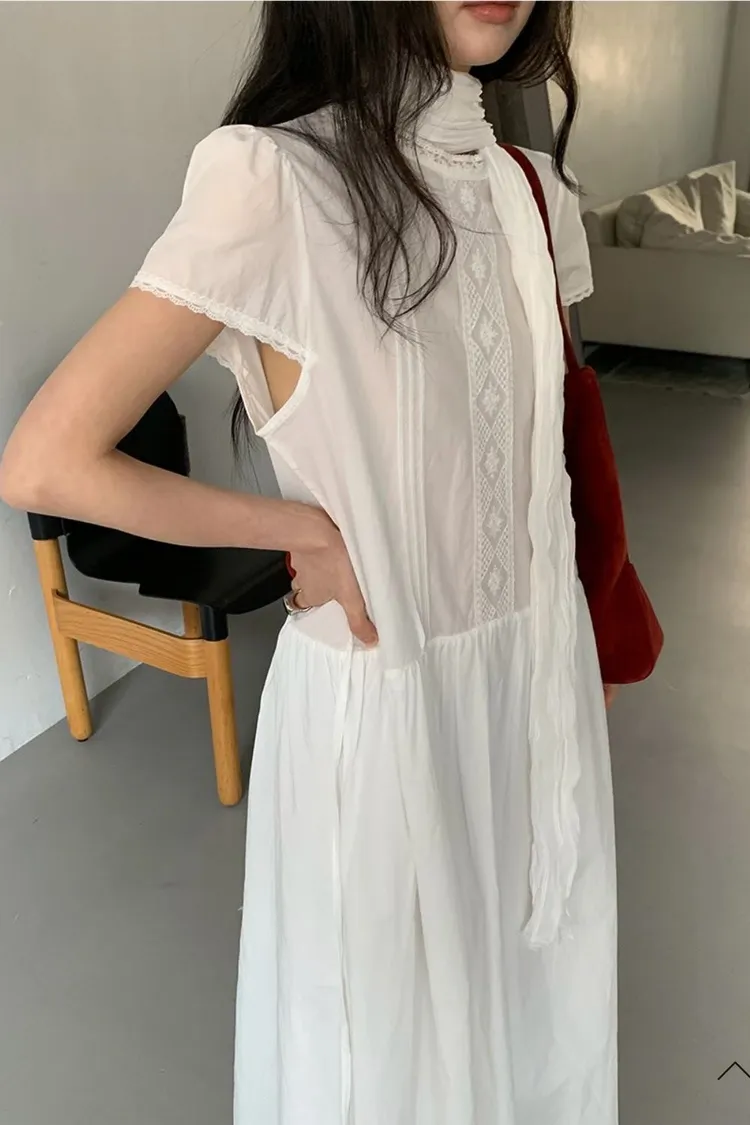 不只是純白,我們更在乎布料上的每一道刻痕。上身的直條壓褶在視覺上極度顯瘦,搭配領口與排釦處的微立體刺繡,讓整件洋裝散發出如藝術品般的氣息。