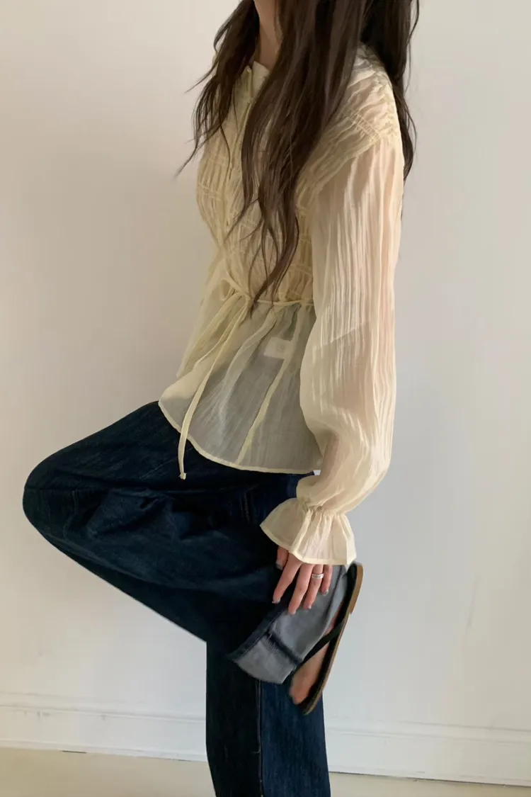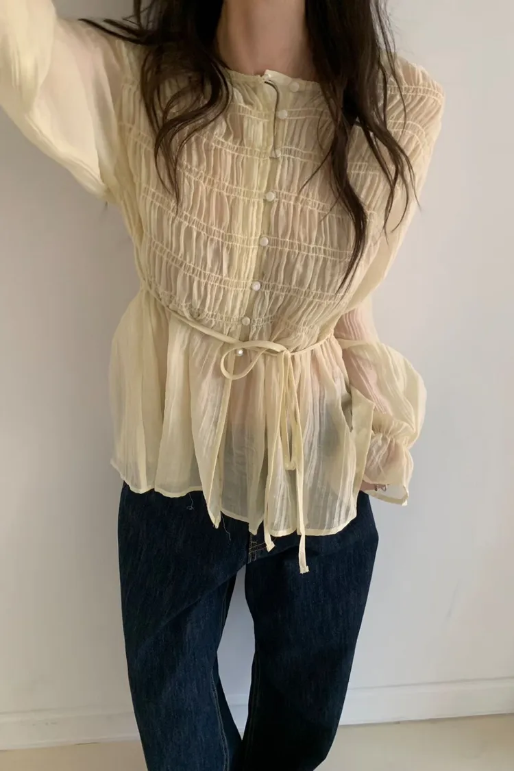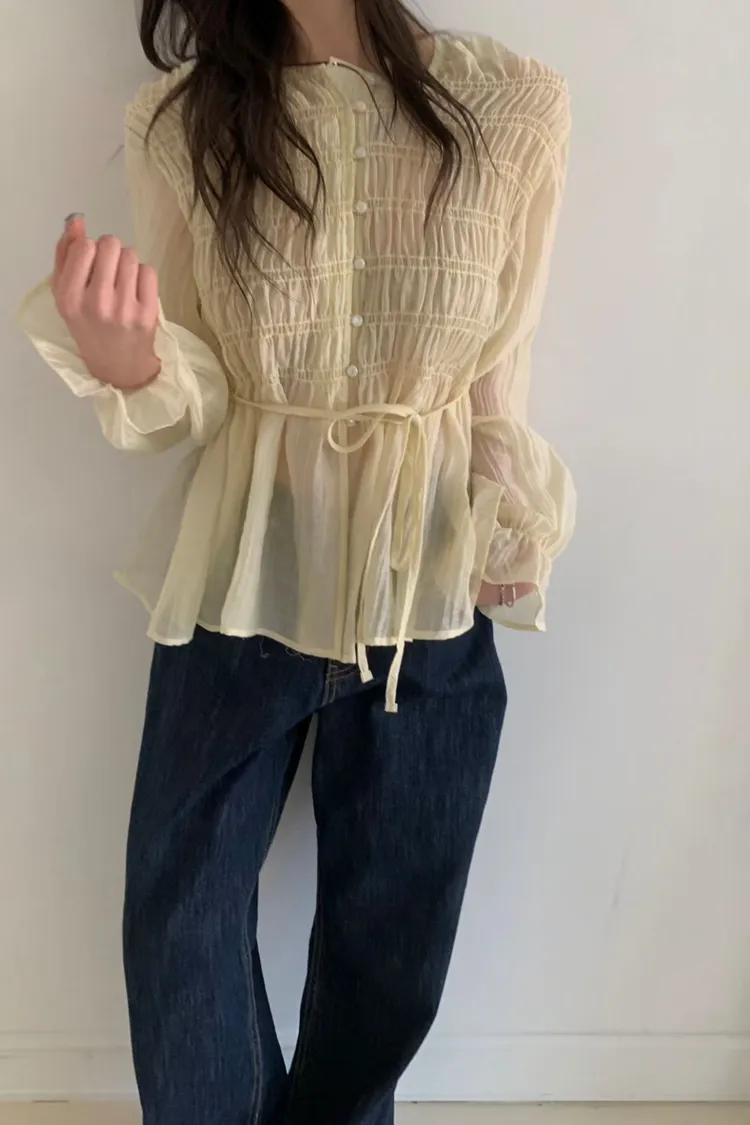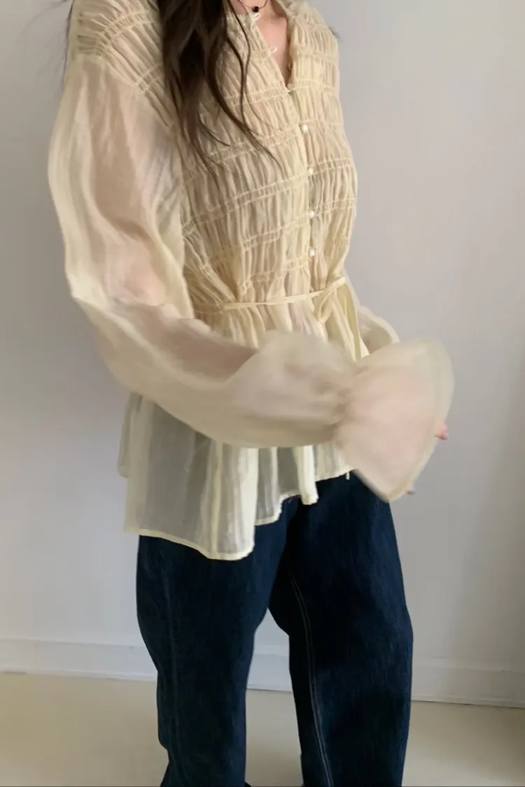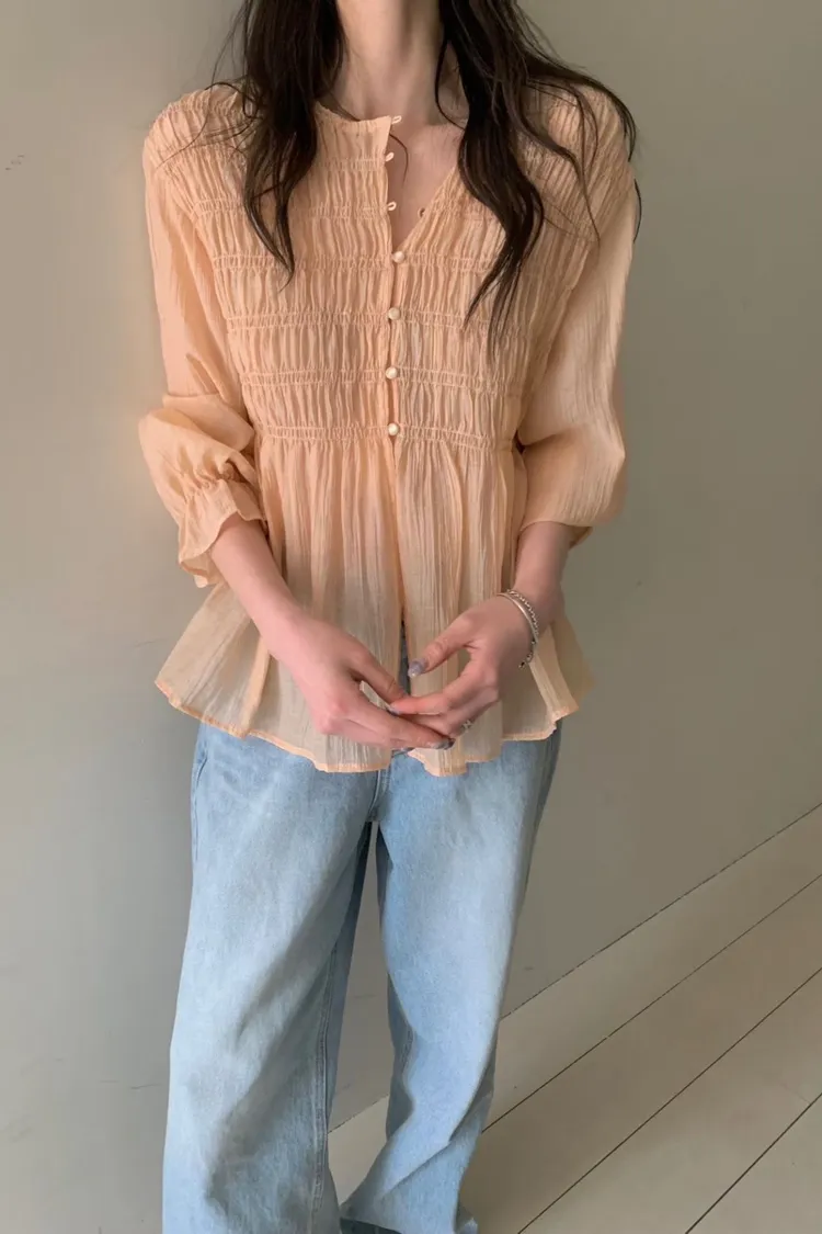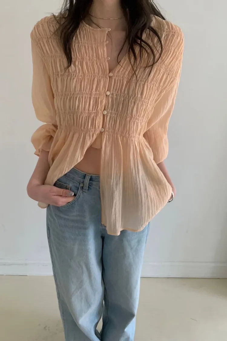 如果妳想要一件「穿上去心情會變好」的上衣,絕對是這一件。 細膩的橫向抽褶設計,讓簡單的罩衫擁有了像奶油般的立體層次。 ✨ 妳會愛上的細膩細節: 立體縮褶設計:胸前的多道縮褶工藝,不僅增加了視覺豐富度,更能自然地修飾身型,穿出纖細的既視感。 空氣感透氣布料:布料輕盈得像雲朵,帶有一點點微透感,非常適合台灣春夏交替的氣候。 柔和春日雙色: