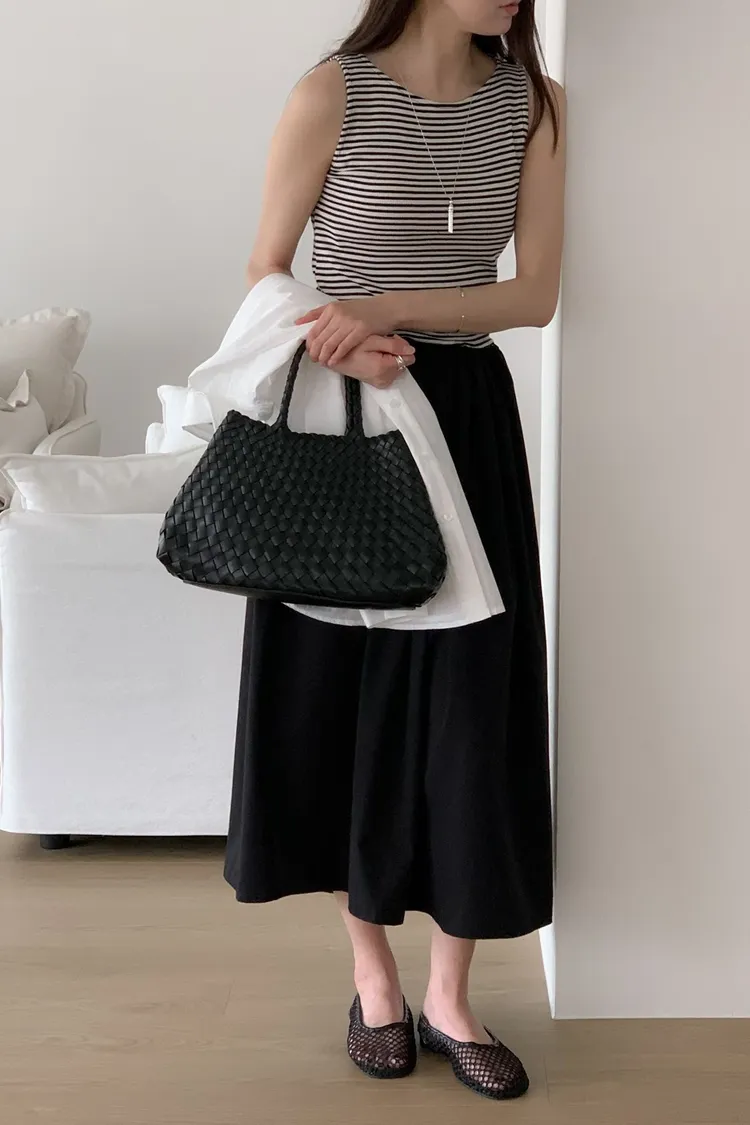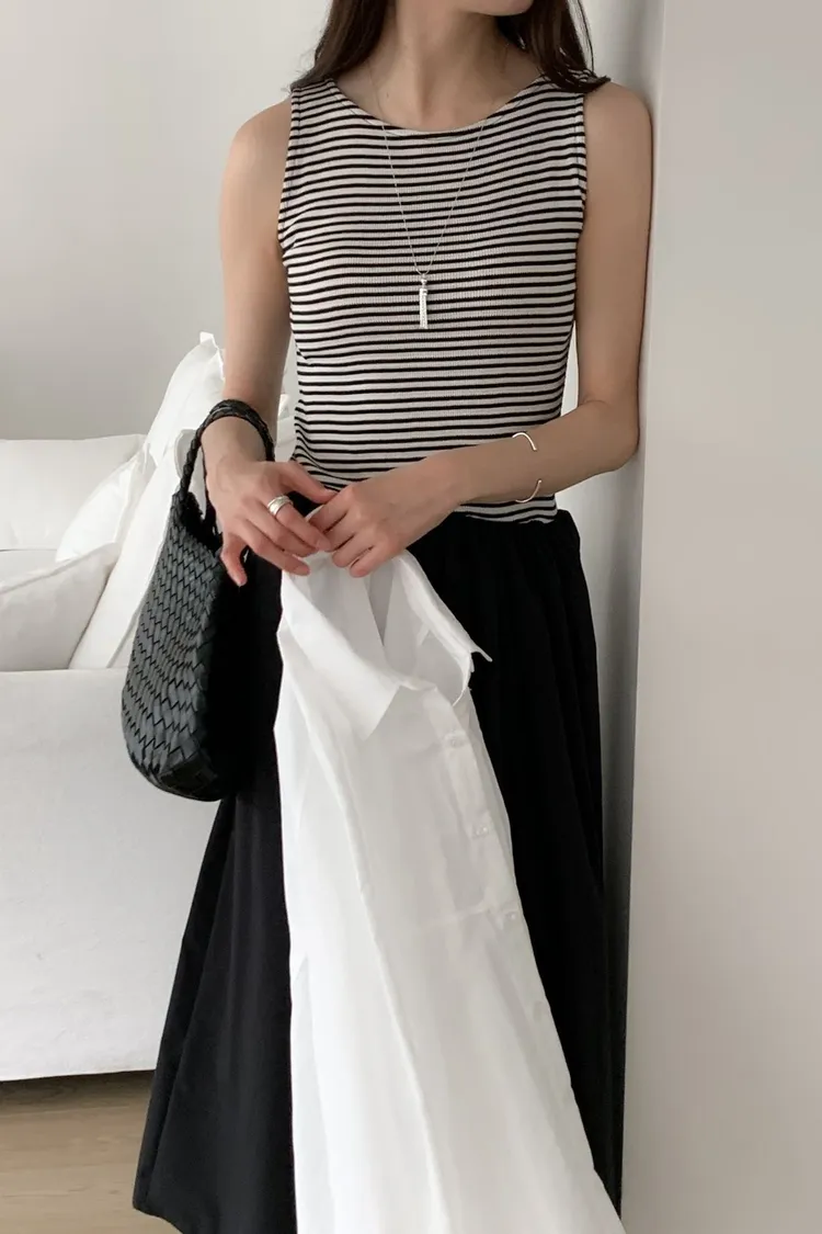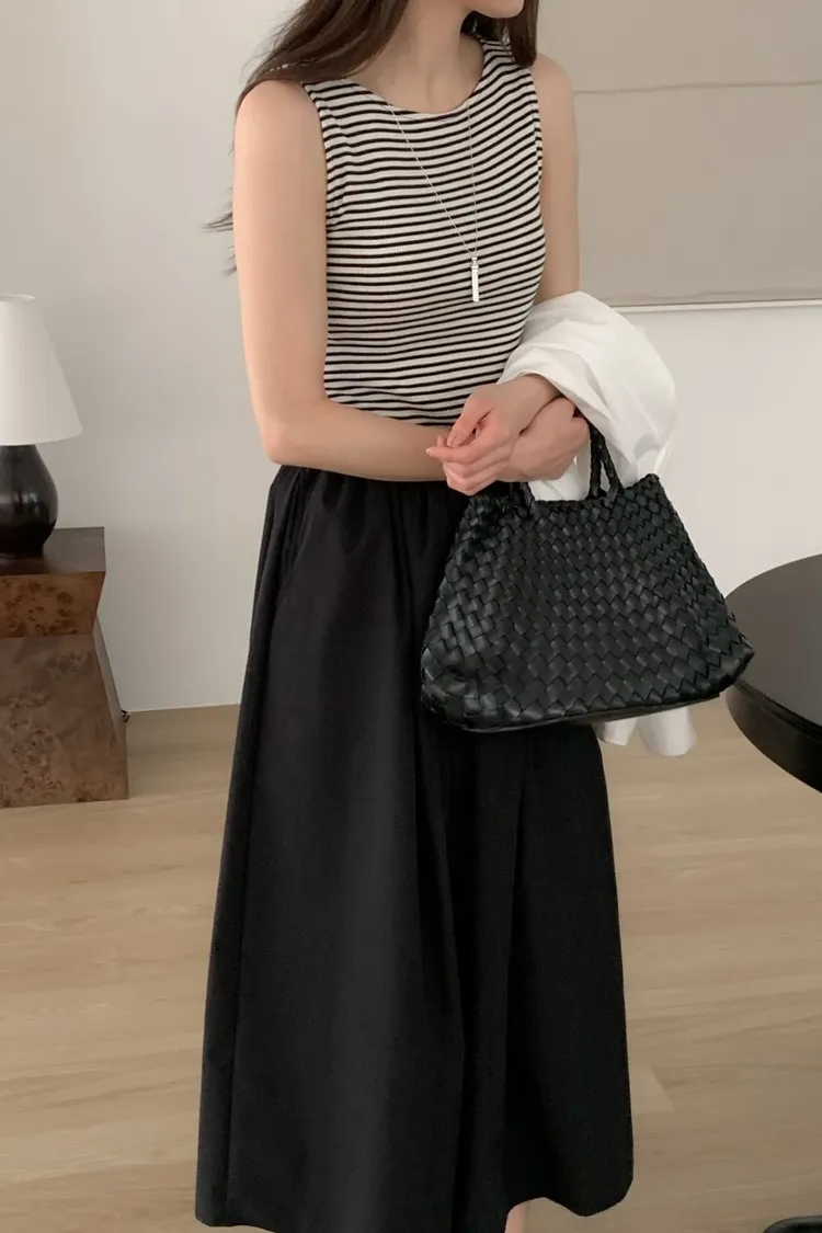 ✅ 清爽無袖剪裁:夏天最需要的涼爽感,搭件薄針織外套也超有層次。