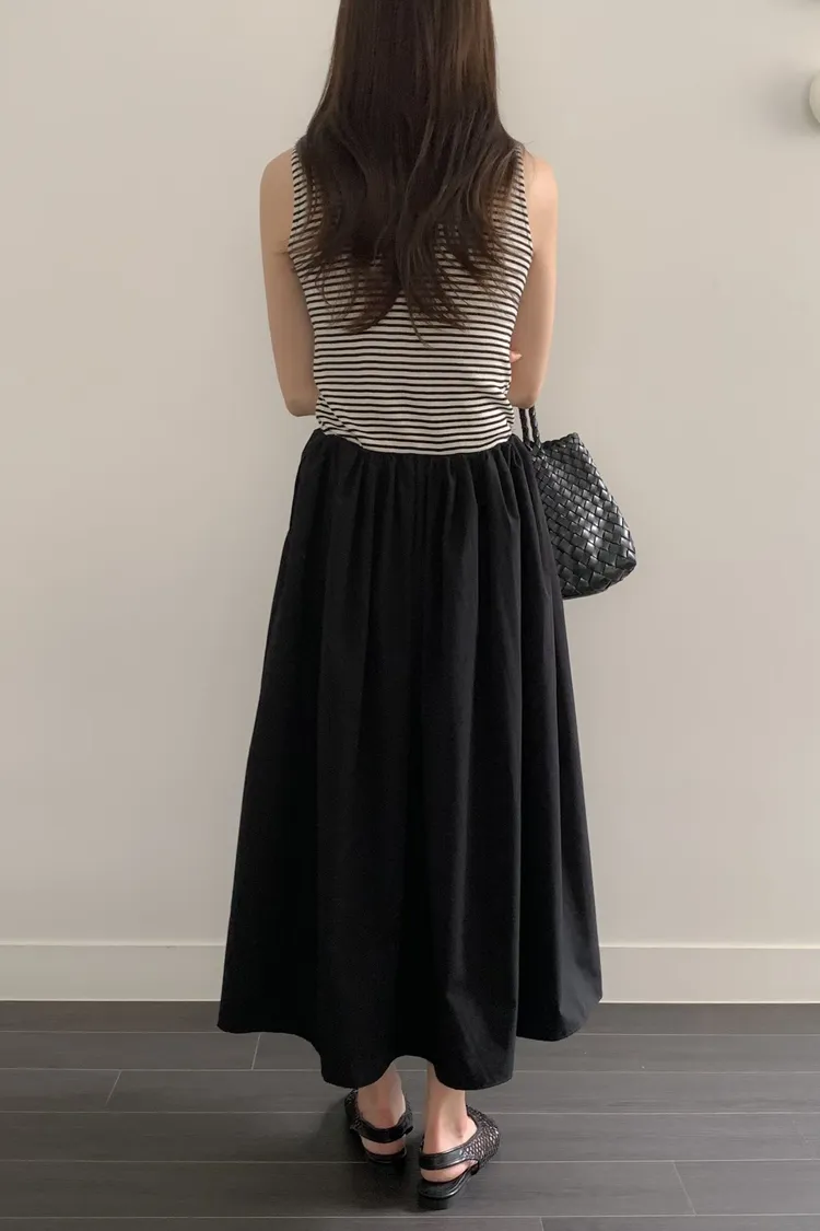 上身是修身的經典細條紋,下身拼接挺版大裙擺,穿上瞬間擁有完美比例。