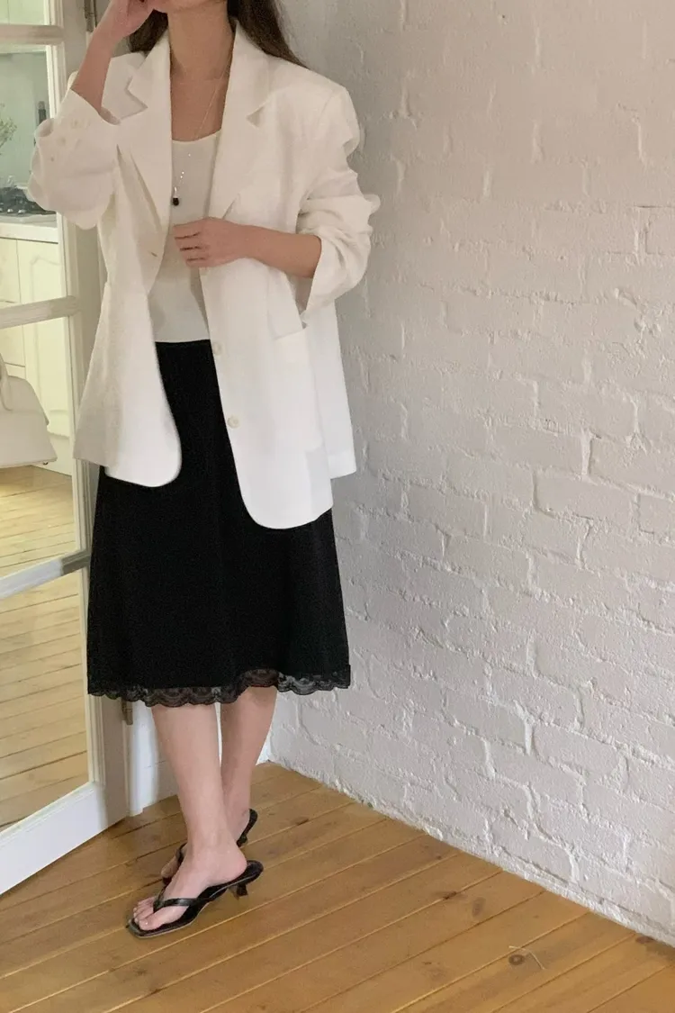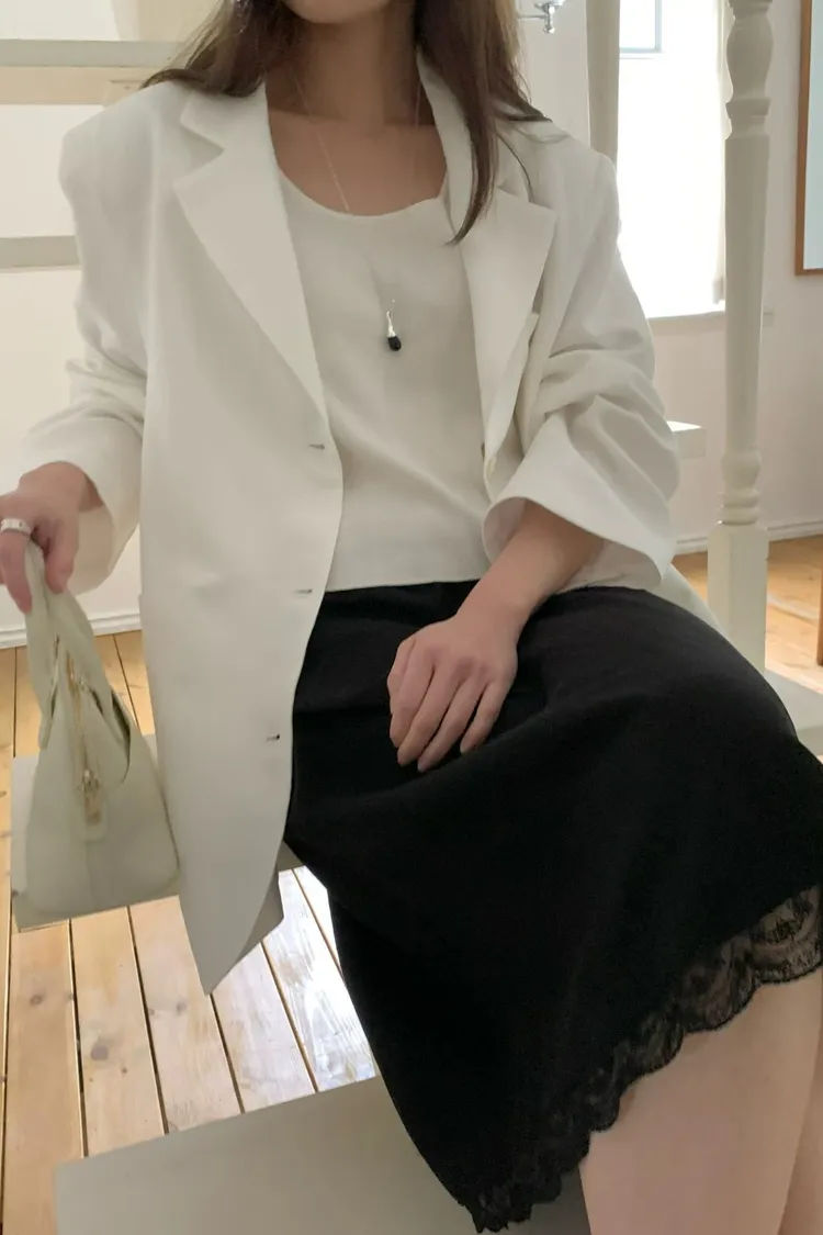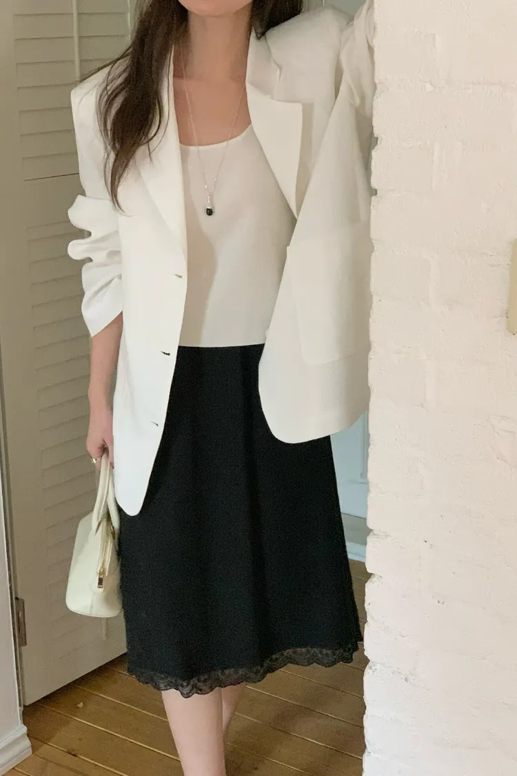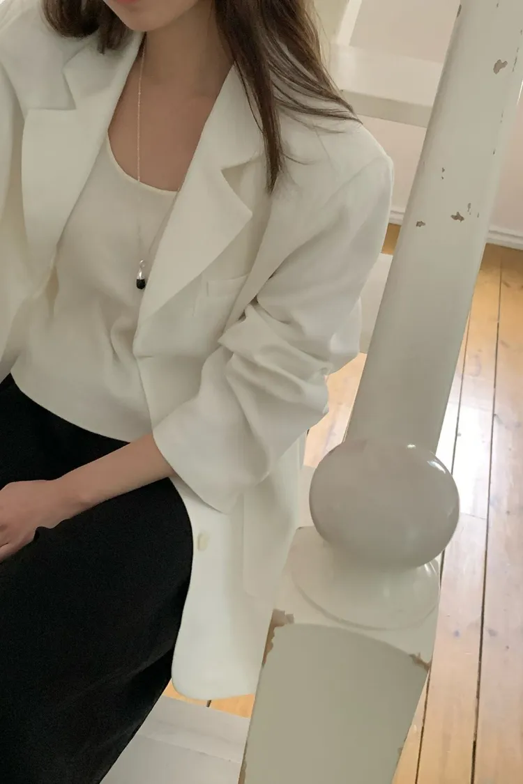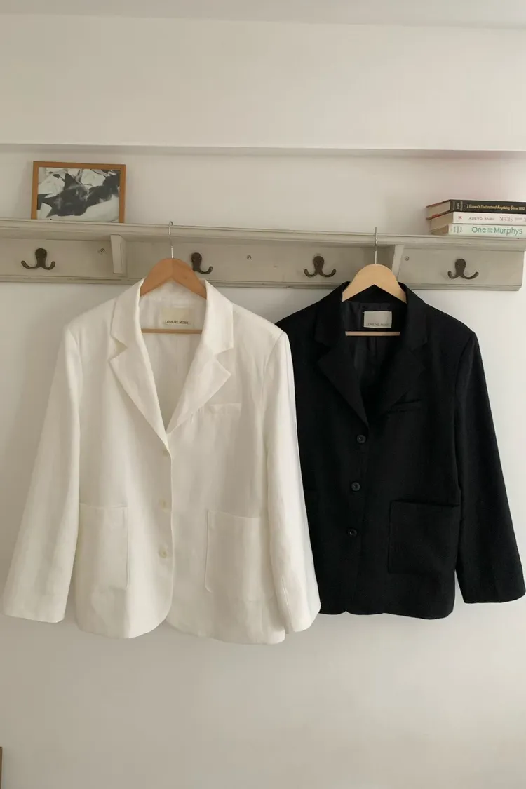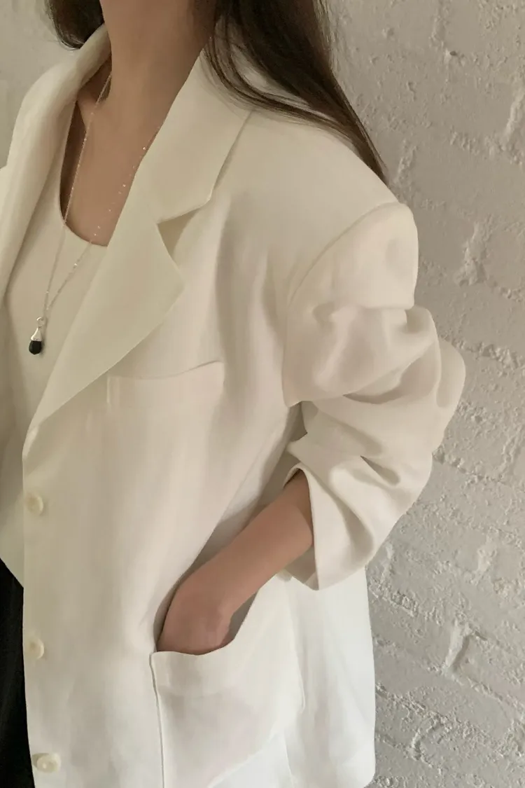 如果擔心花樣洋裝太過甜美,套上這件「微光時光」西裝外套,瞬間就能切換成知性、高級的風格。 ✨ 設計細節: 顯瘦剪裁:適度的墊肩與收腰,讓妳穿上洋裝後依然保有俐落的線條。 細膩布料:近看帶有細緻的織紋,與今天的立體感洋裝呼應得剛剛好。 實用雙口袋:不只是裝飾,大口袋設計增加了穿搭的隨性感。