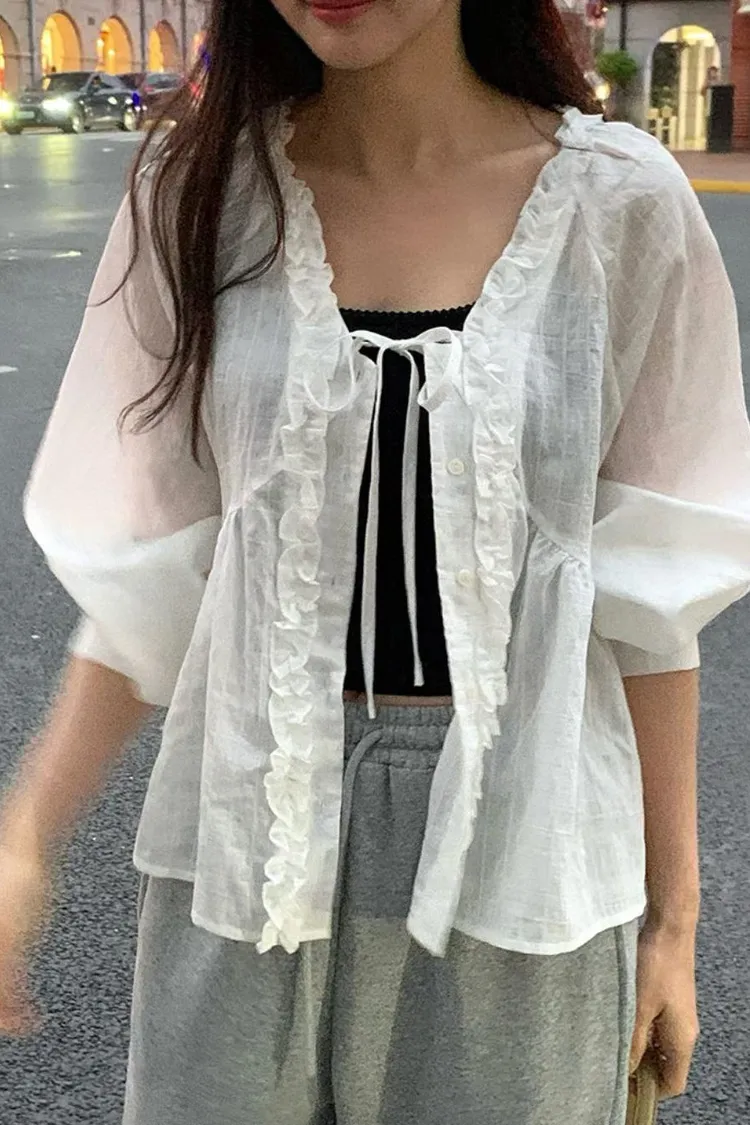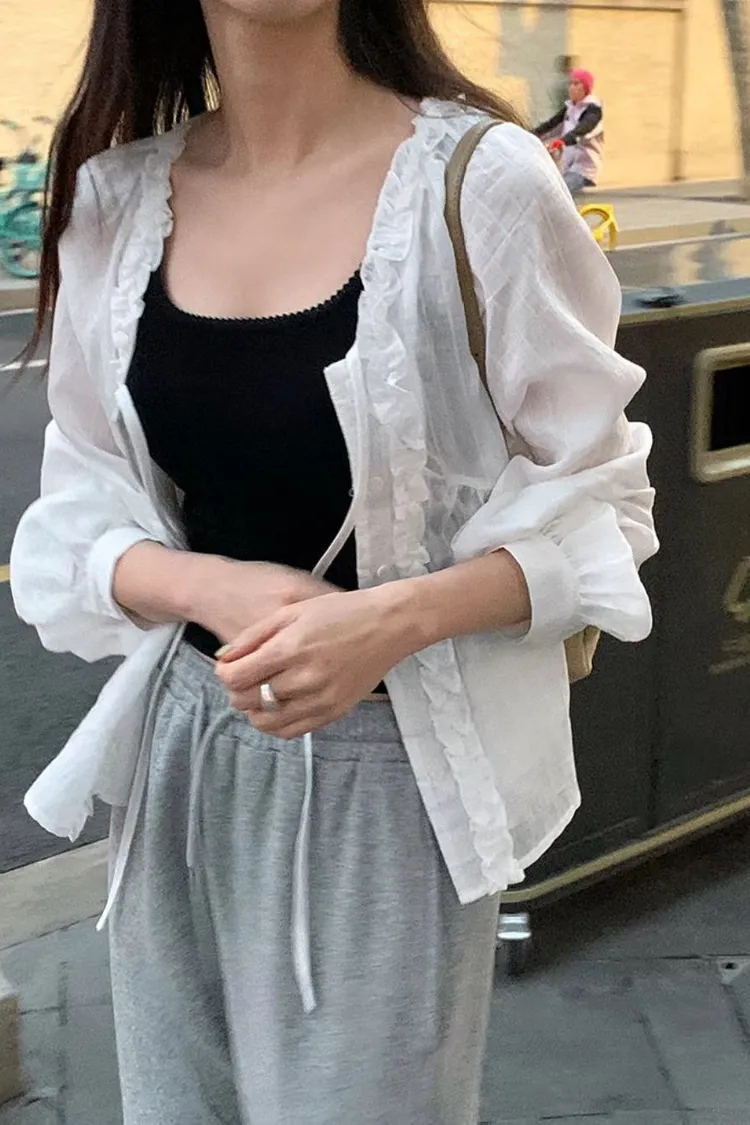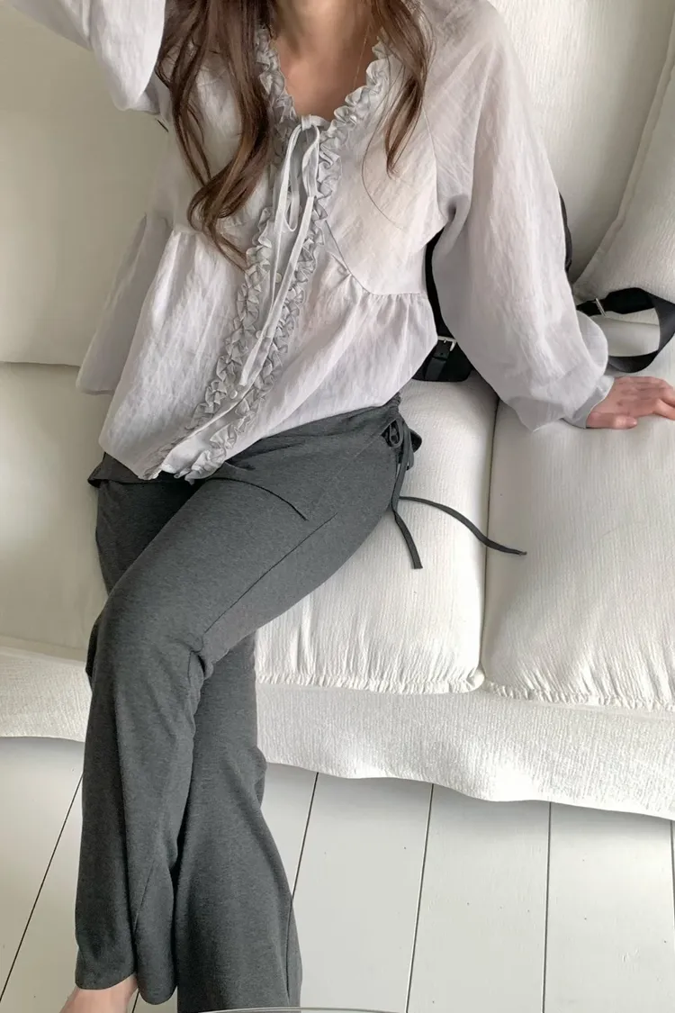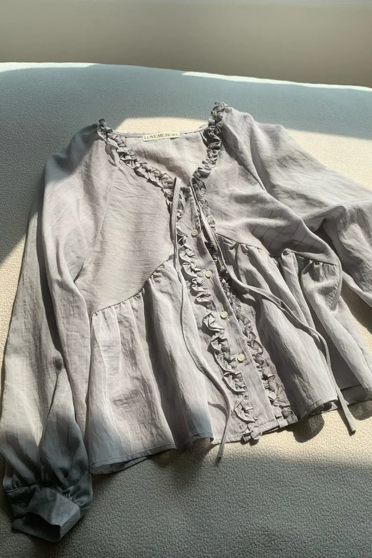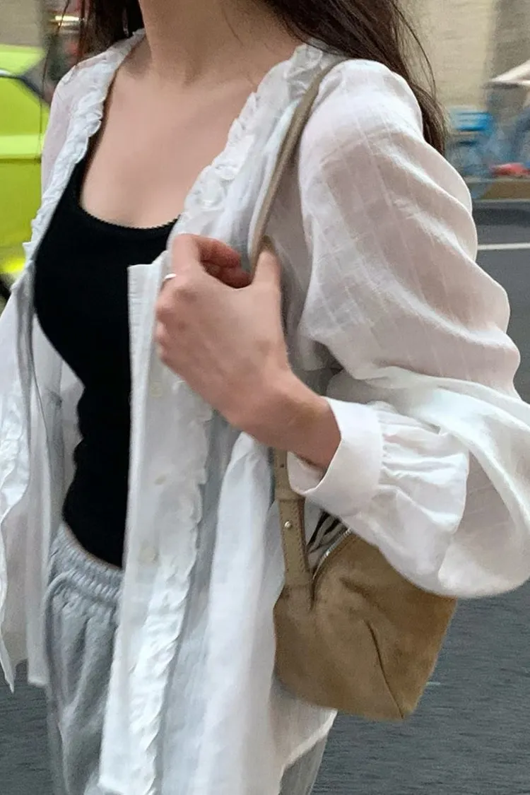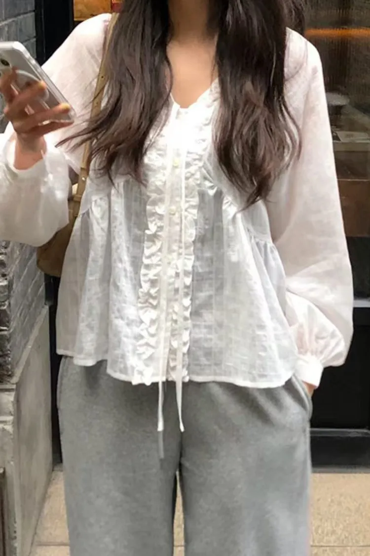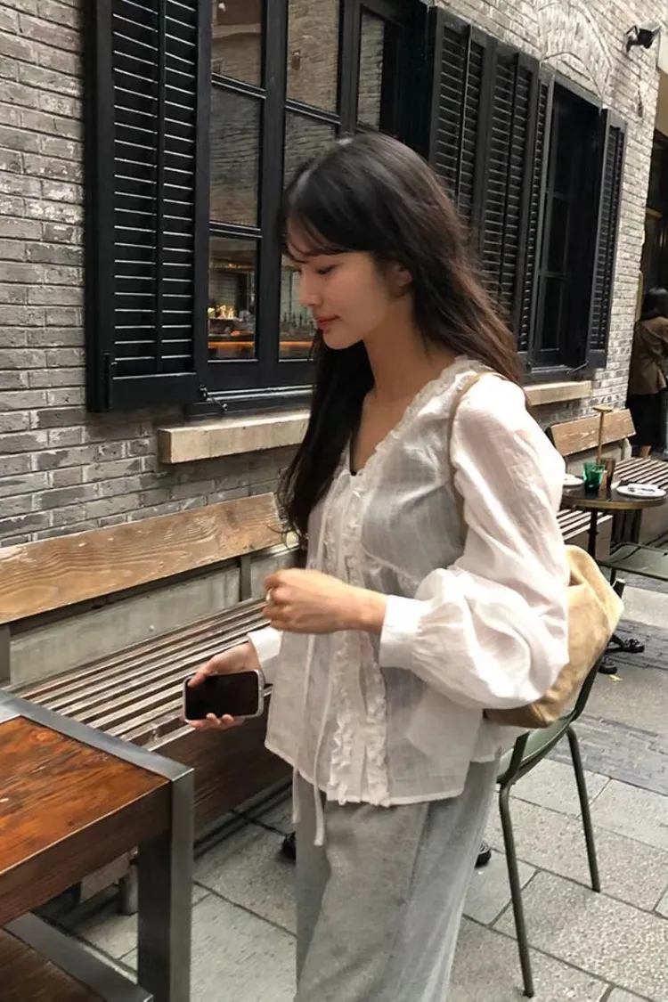 除了最具質感的迷霧紫,這款上衣的「純淨白」更是我們這次 新品中的仙氣擔當 白色更能顯現布料上細膩的壓紋與光影,讓法式荷葉邊的層次感更加分明 ✨ 妳不能錯過的細節: 空氣感面料:白色的透度剛剛好,帶有一種會呼吸的輕盈感。 浪漫長綁帶:純白的細帶隨性垂墜在胸前,搭配昨天的「神級丹寧系列」,就是最細膩的春夏日常 修身高腰剪裁:高腰抽褶能完美修飾腹部,讓白色單品也能穿出極致的顯瘦感