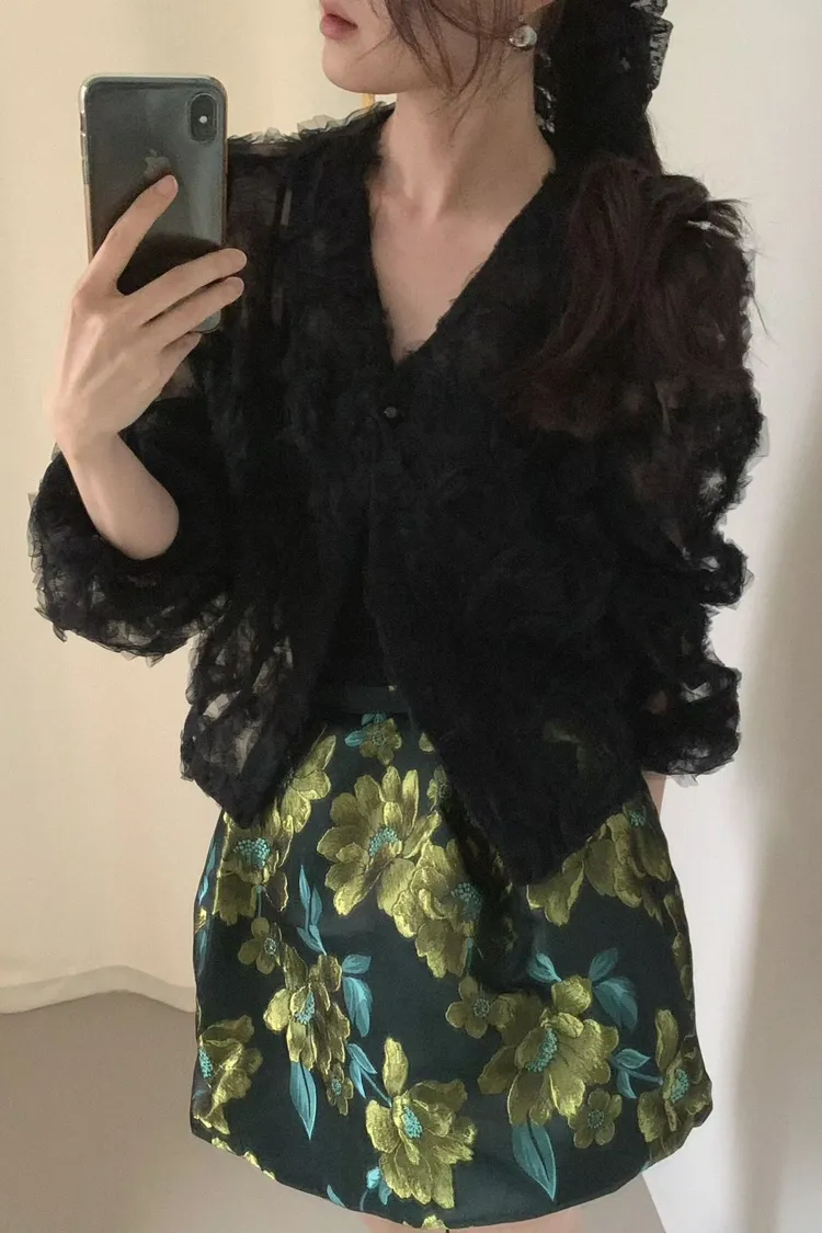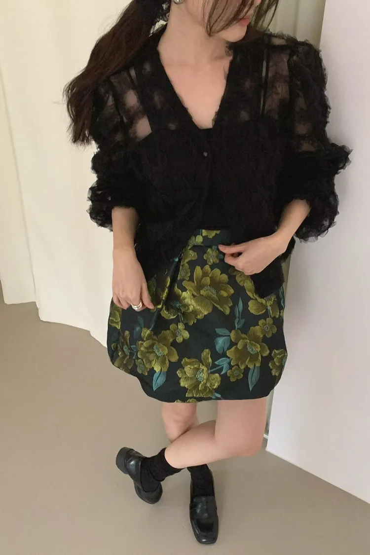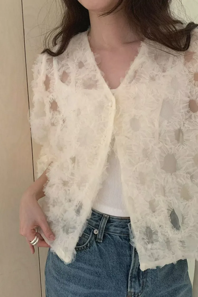 層次感極致:布料帶點微透,內搭一件小背心就能展現立體美學。
