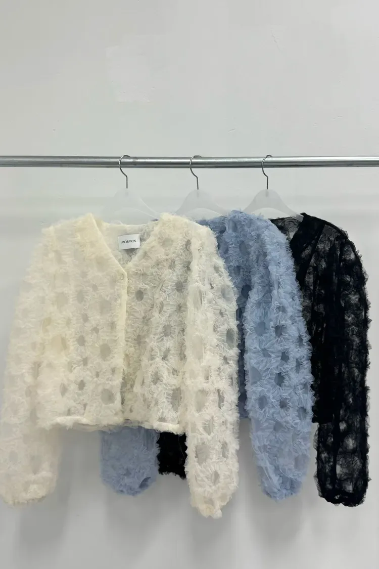全件滿佈立體羽毛感織紋,不只視覺上有豐富的層次,手感更是軟糯細膩。