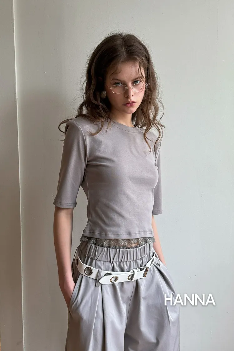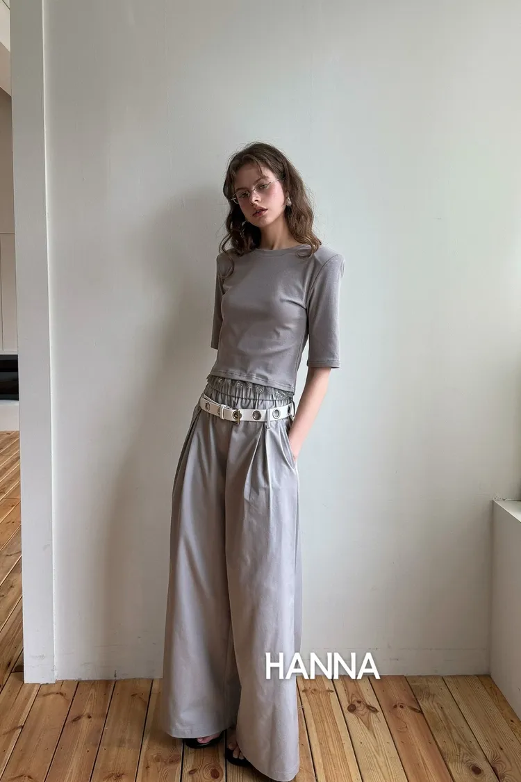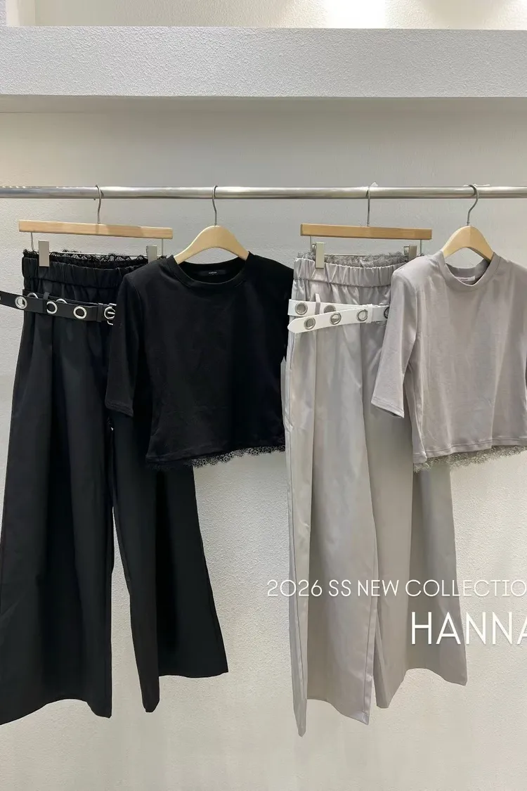 這組真的太時髦了!四月新品預購,這套是我們的小編一致票選的必帶款! 不用思考怎麼搭配,整套穿上直接出片,分開穿也超百搭 🖤 ✅ 蕾絲邊短版 T: 微合身剪裁,下擺的精緻蕾絲中和了 T-shirt 的隨意感,不經意地露出腰線,比例超好! ✅ 圓眼腰帶闊腿褲: 亮點就在那個獨特的圓眼皮帶,讓整件褲子很有個性。高腰闊腿版型,穿出逆天長腿。