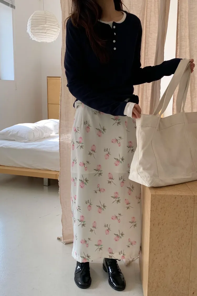 直筒長裙的版型,長度約至小腿肚或腳踝,能修飾身形線條