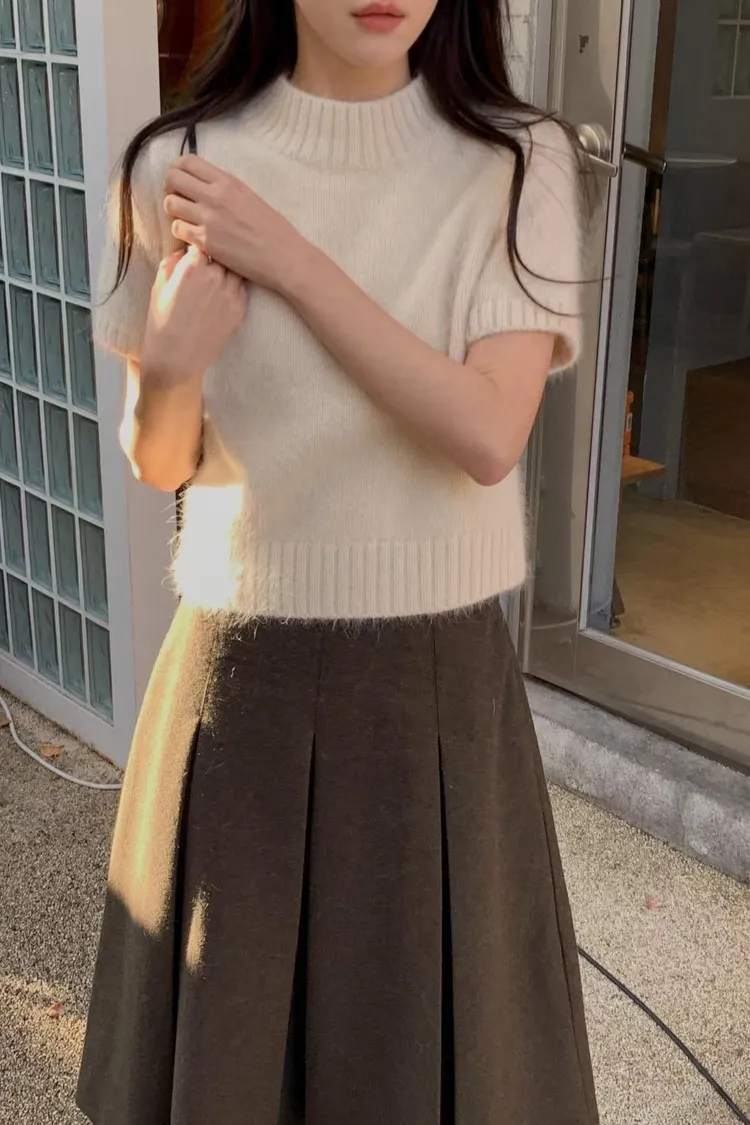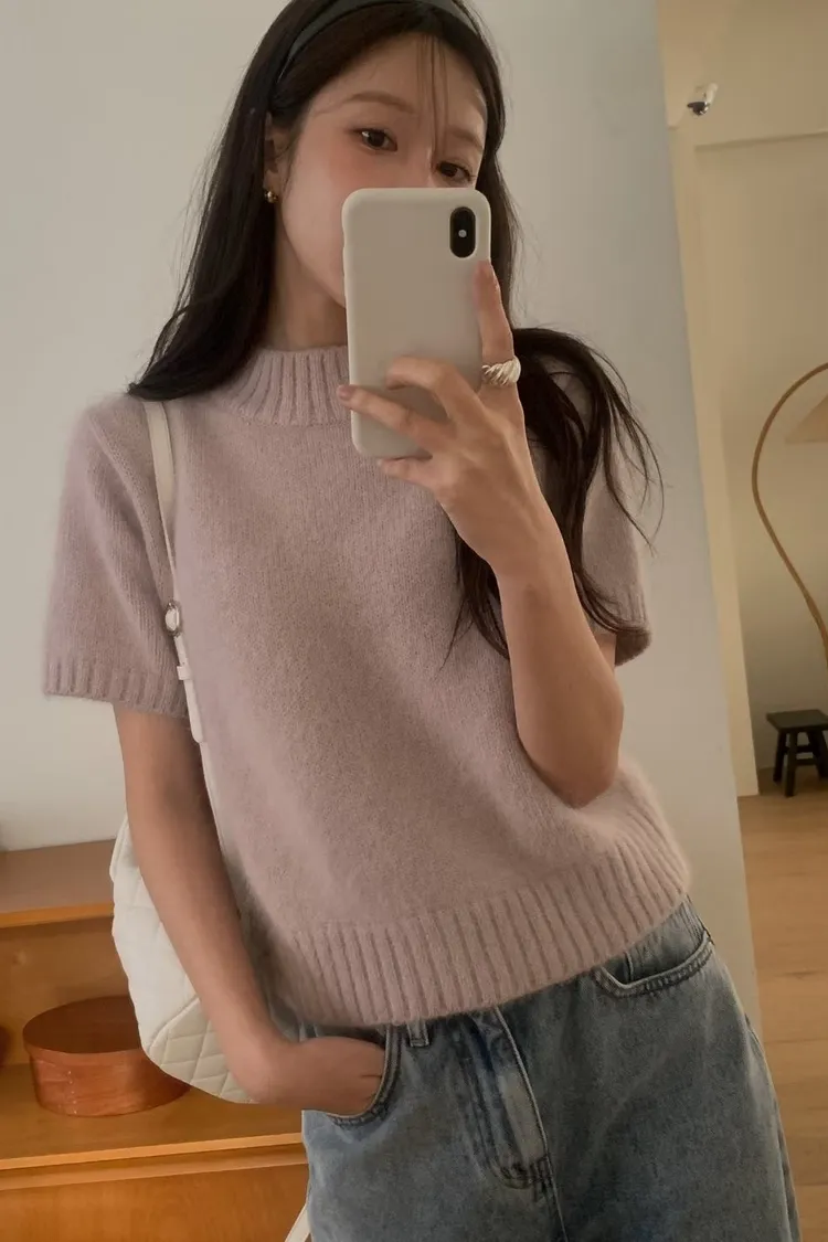 羊駝小高領短袖上衣