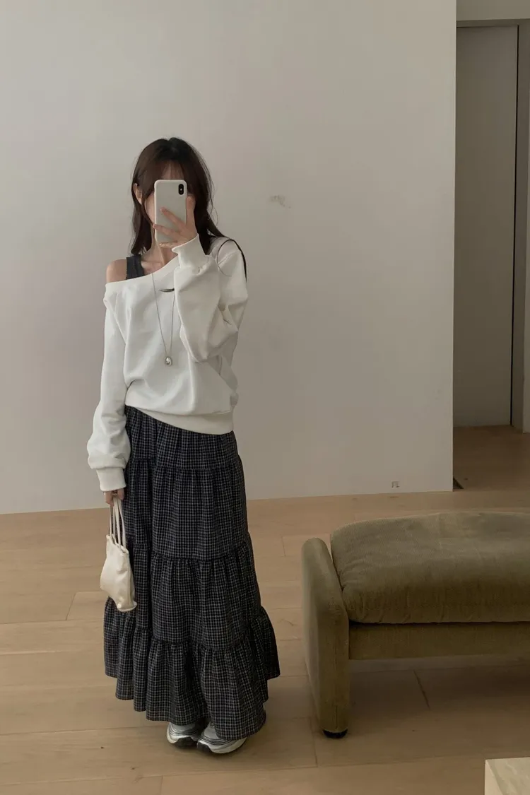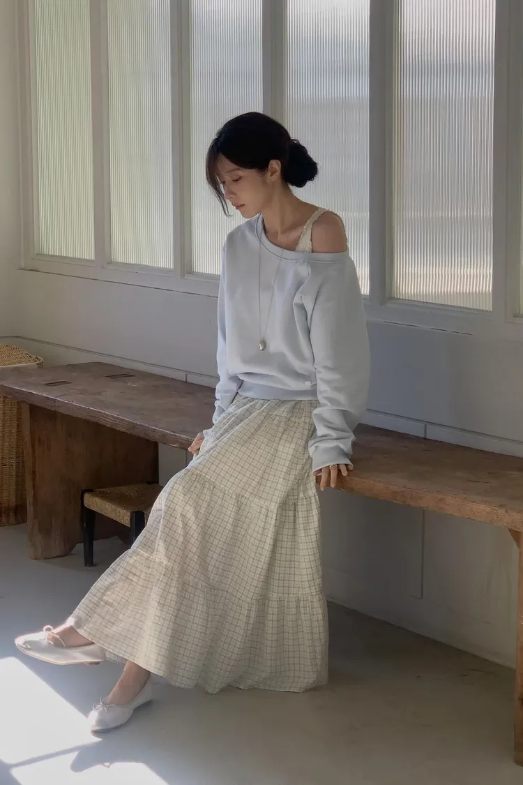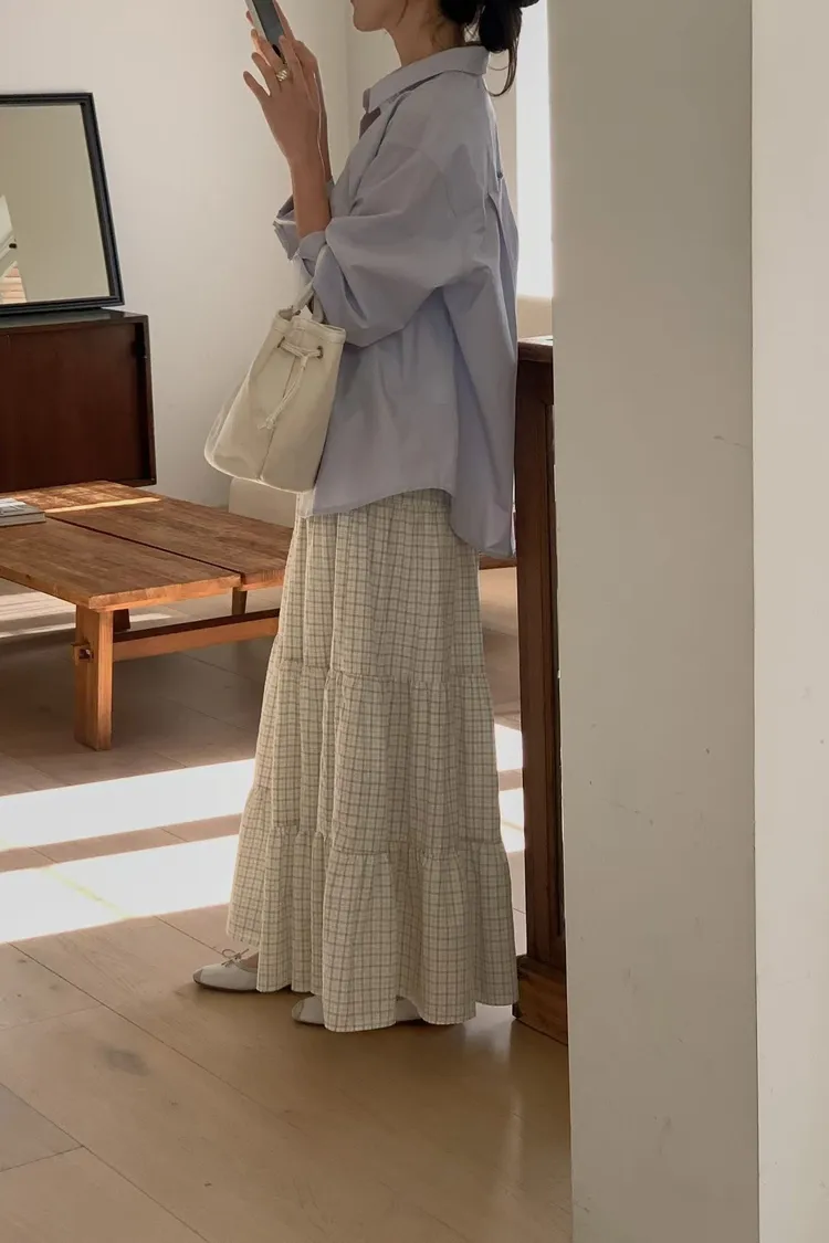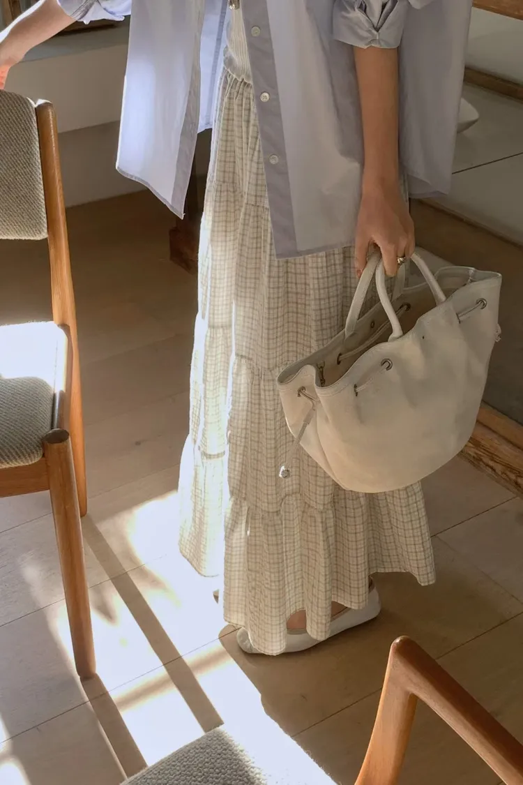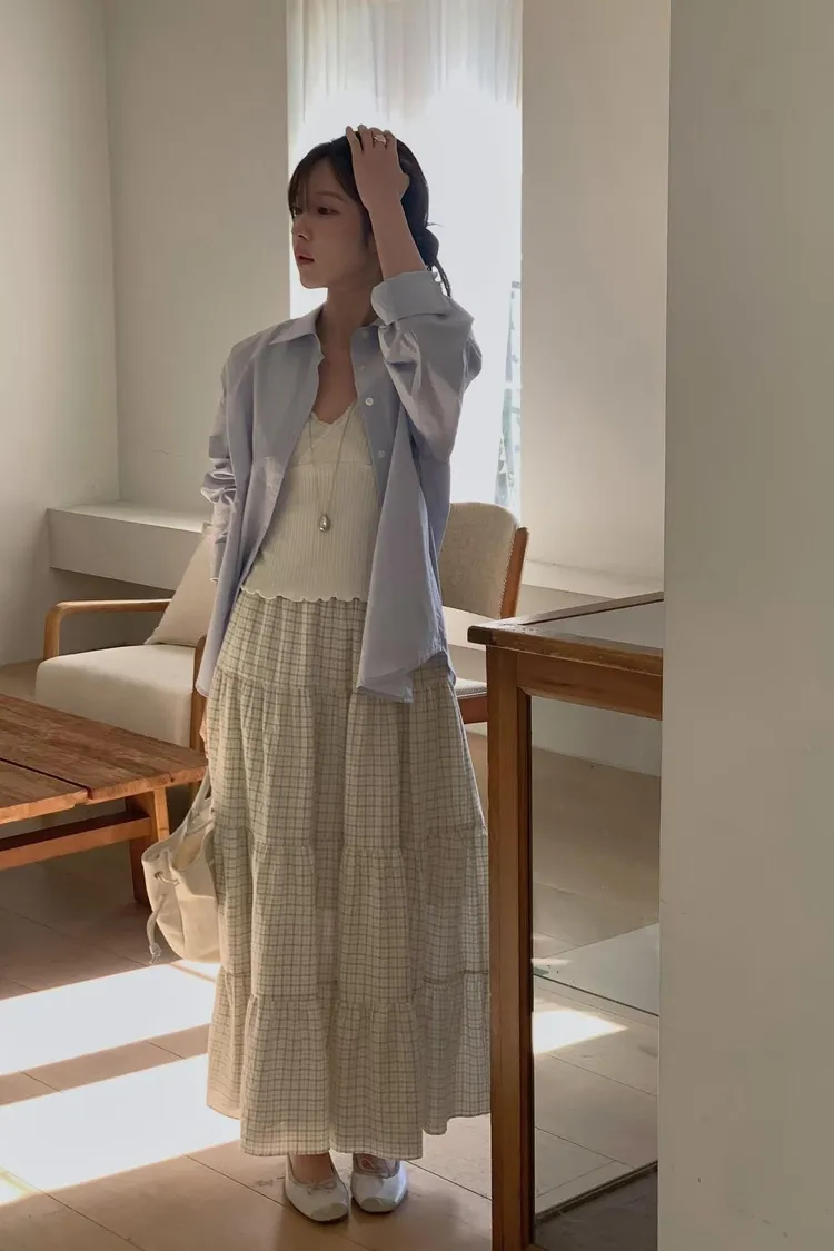 早春~溫柔格子小蛋糕裙