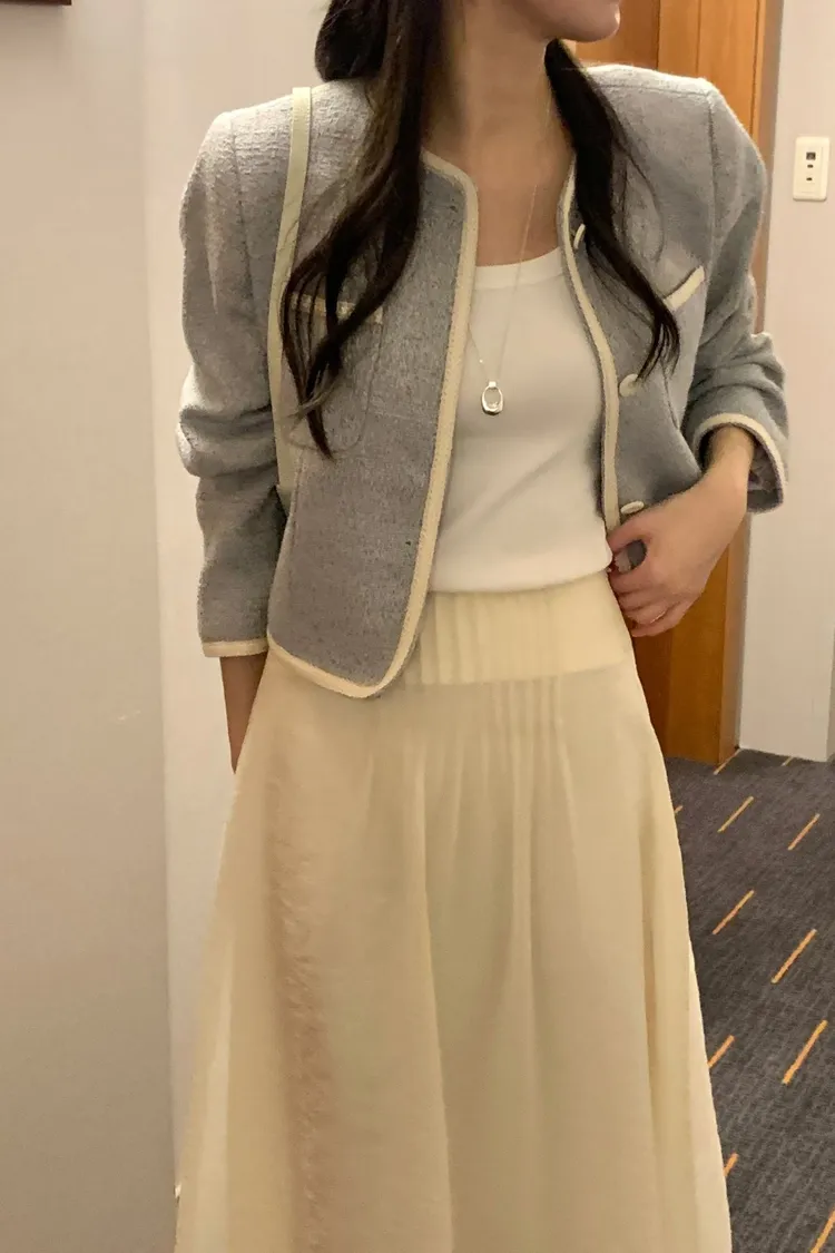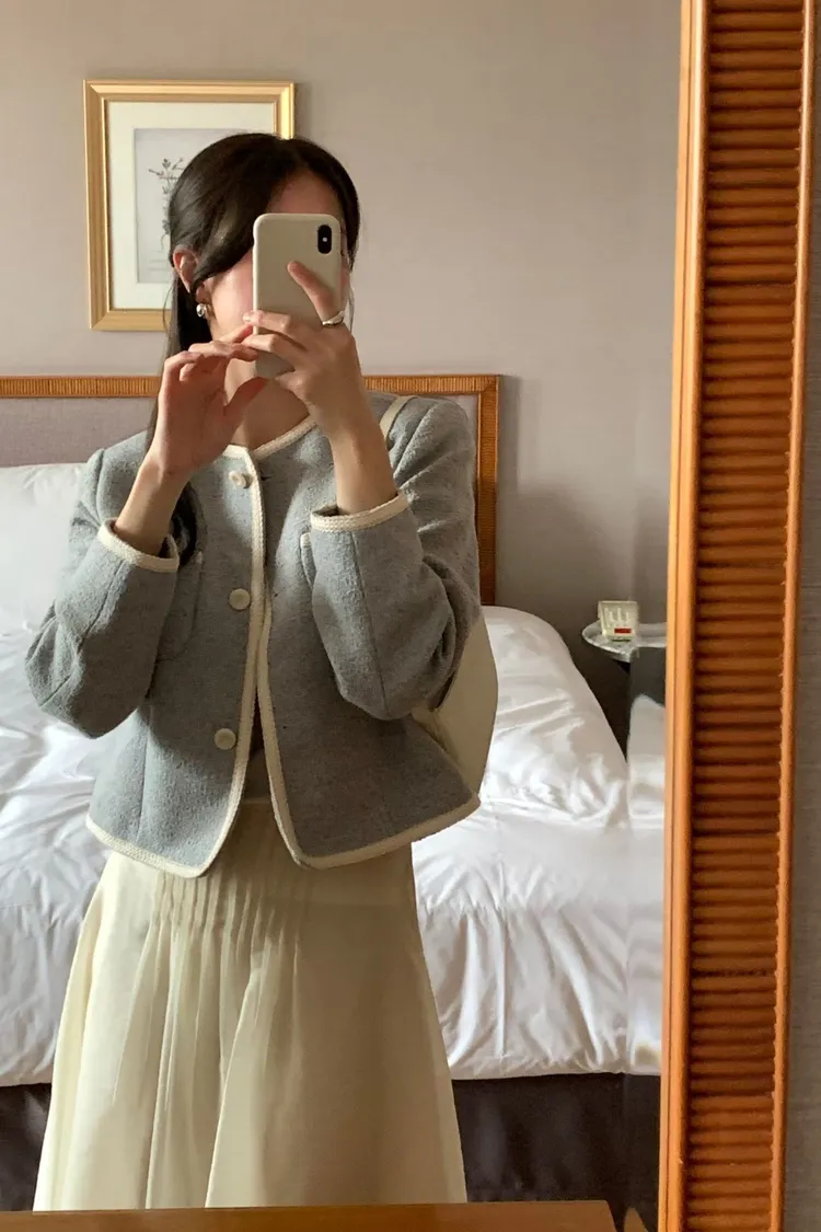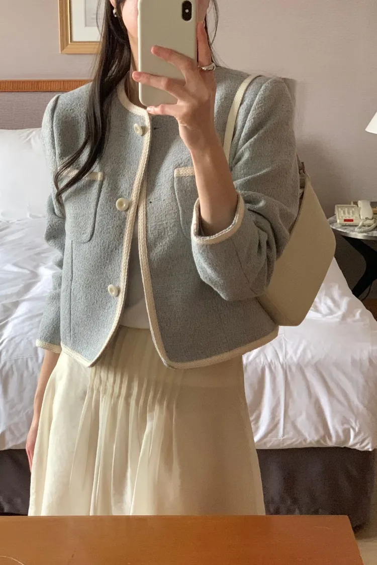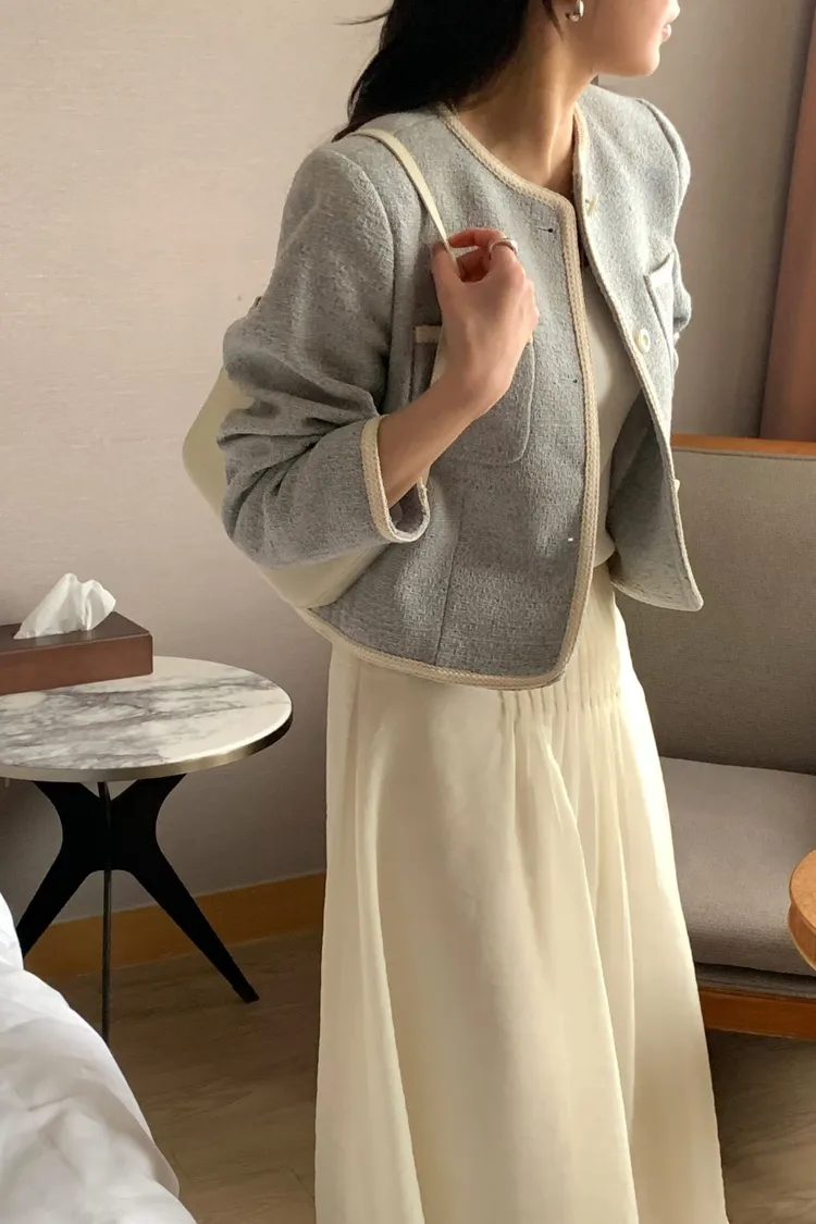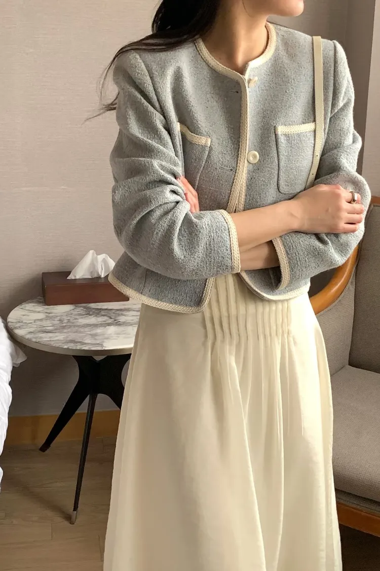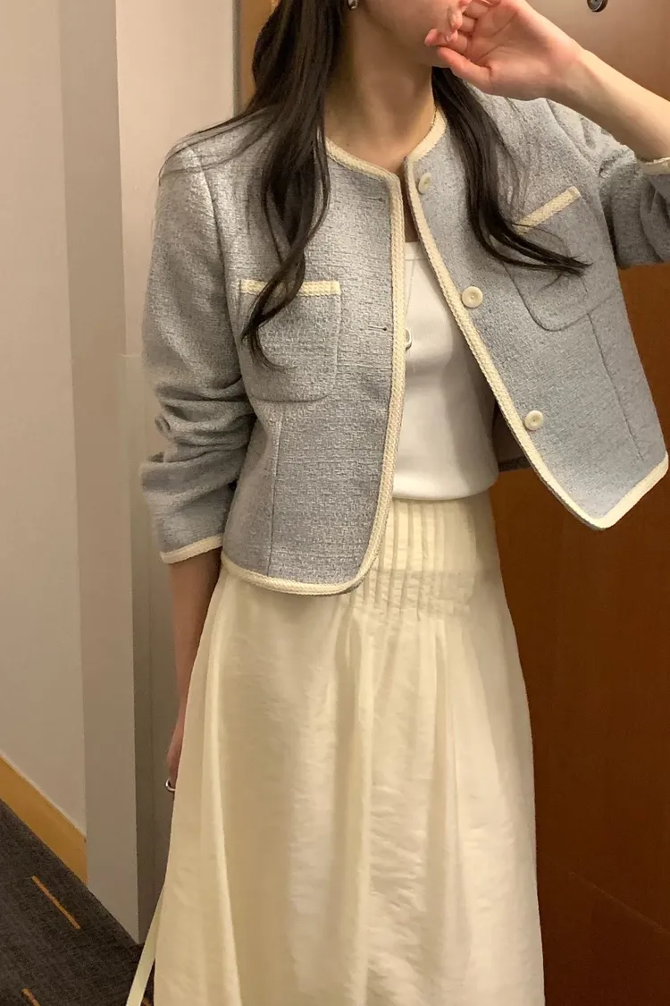 早春~細緻滾邊口袋外套