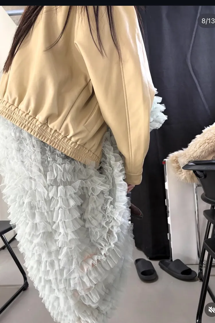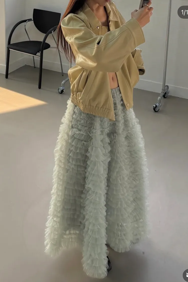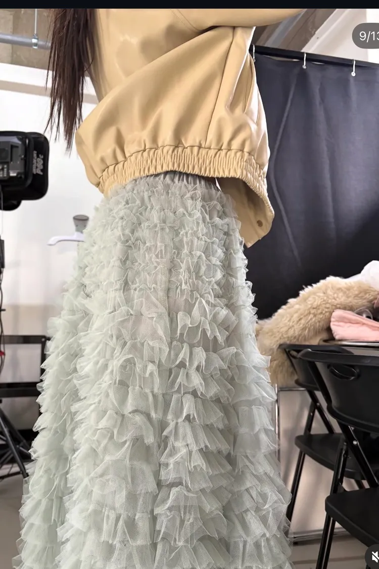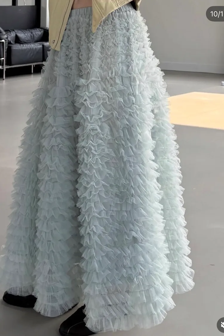 這是一條長版澎紗裙,採用多層次的薄紗面料製成,蓬鬆、飄逸的視覺效果