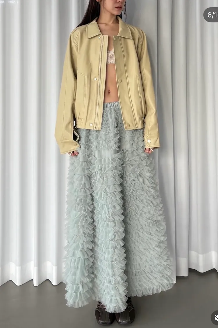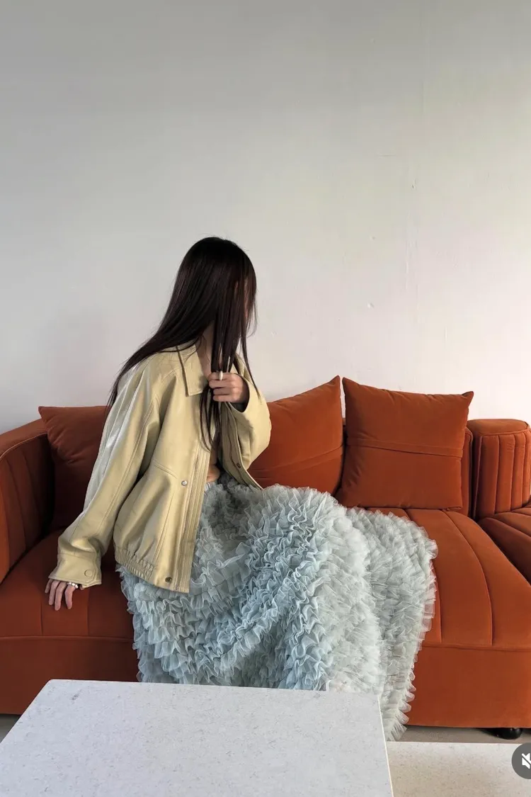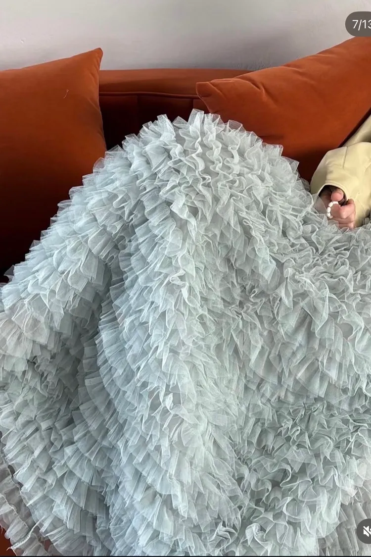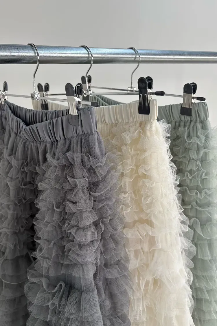 這是一條長版澎紗裙,採用多層次的薄紗面料製成,蓬鬆、飄逸的視覺效果