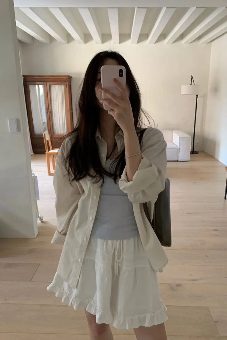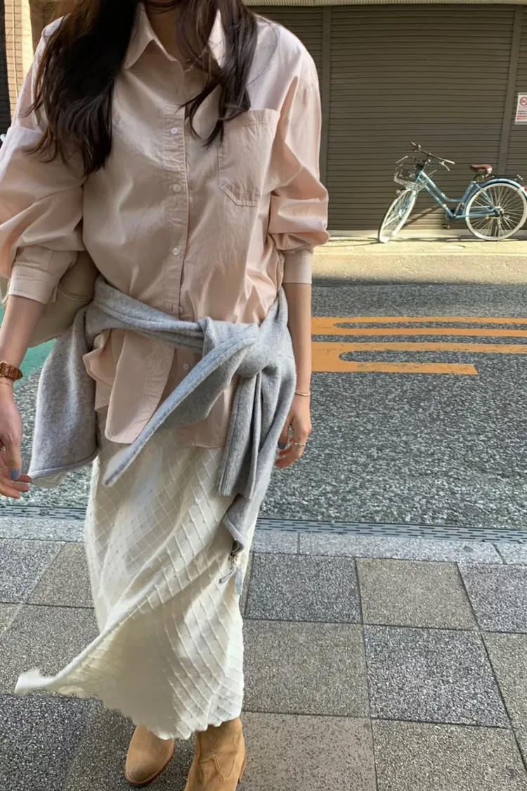 素雅口袋長版襯衫