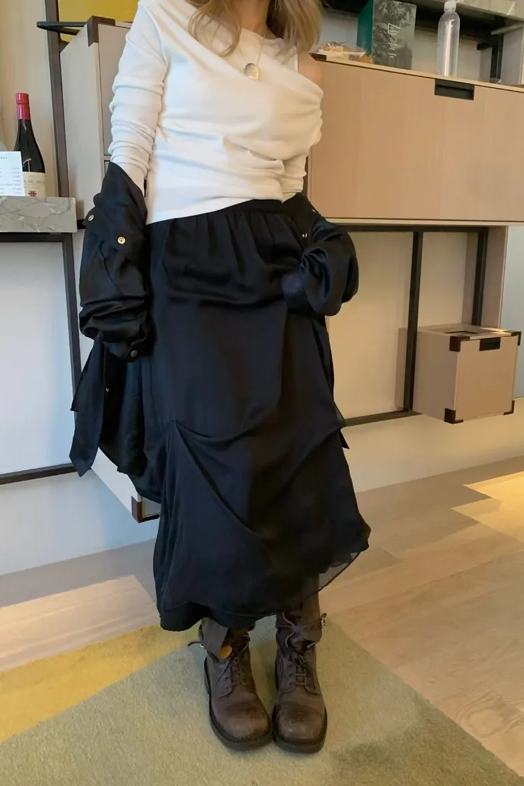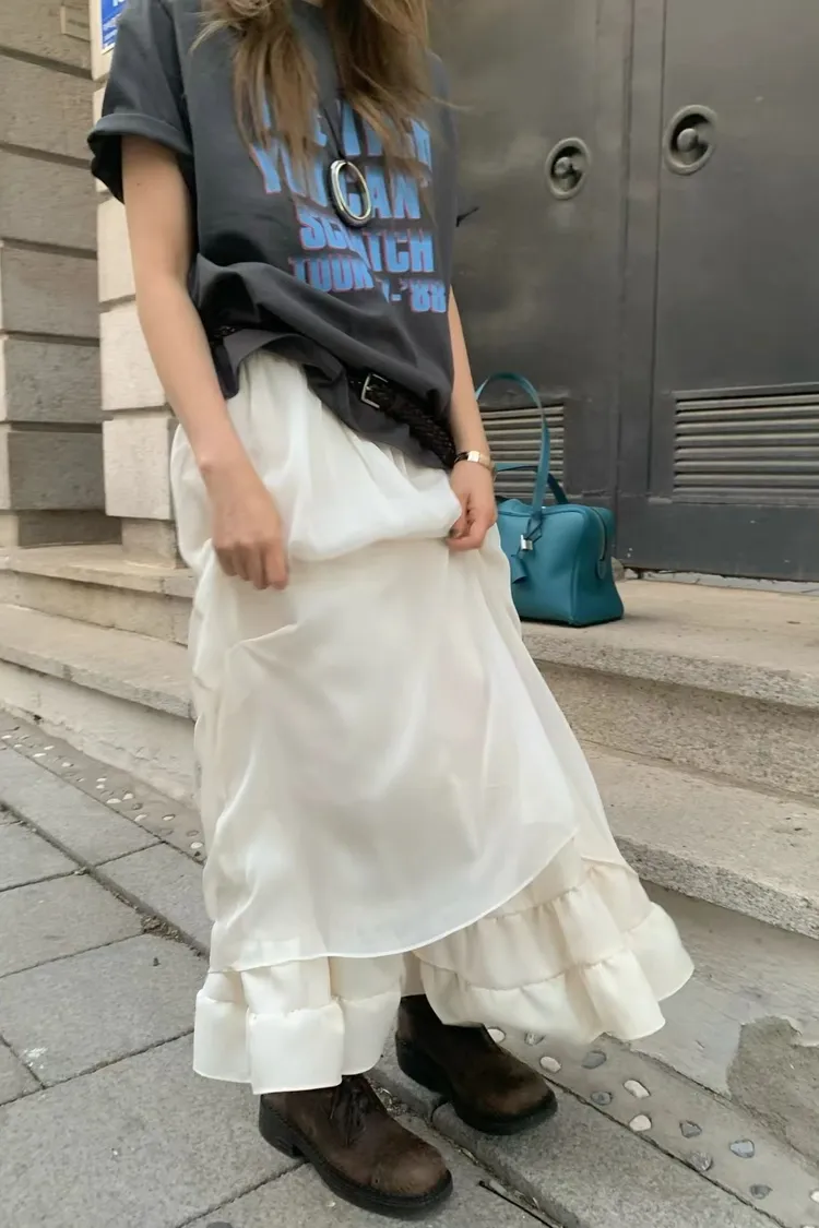 抓皺雙層紗裙