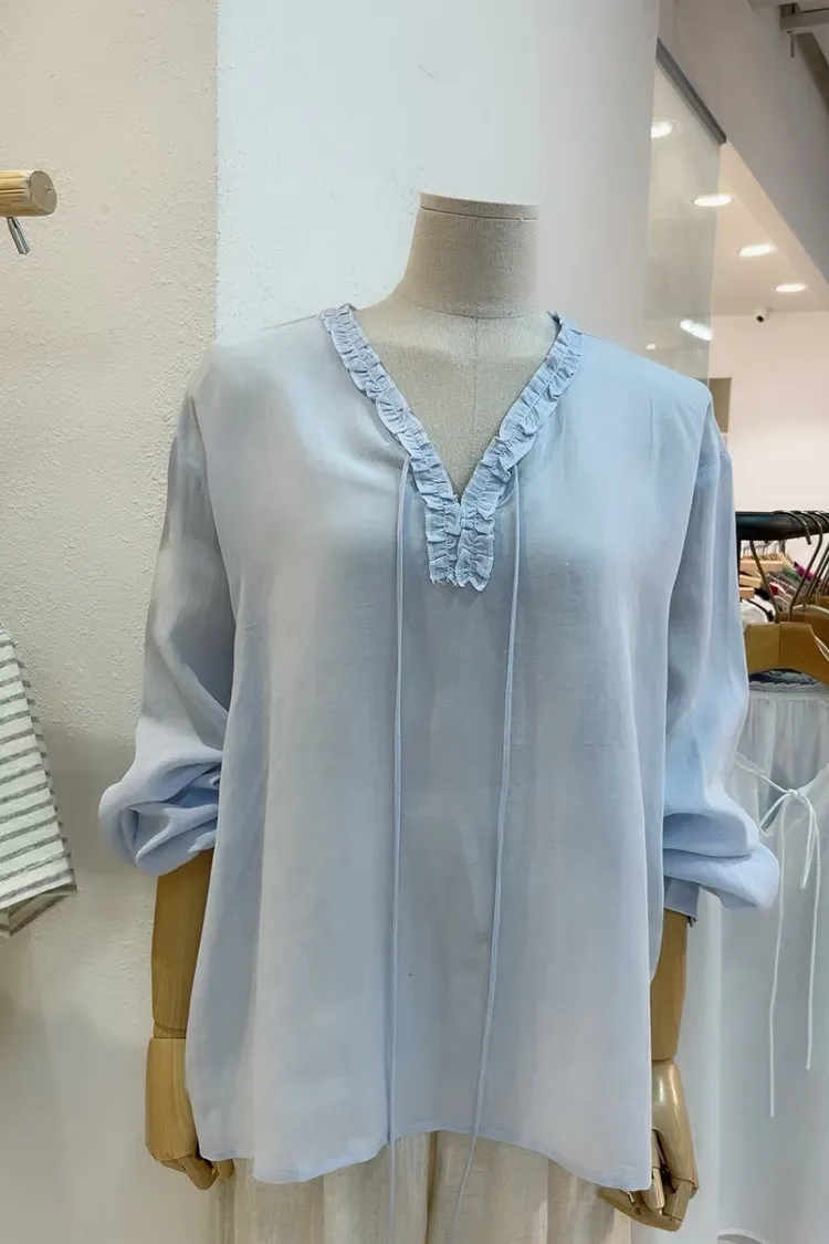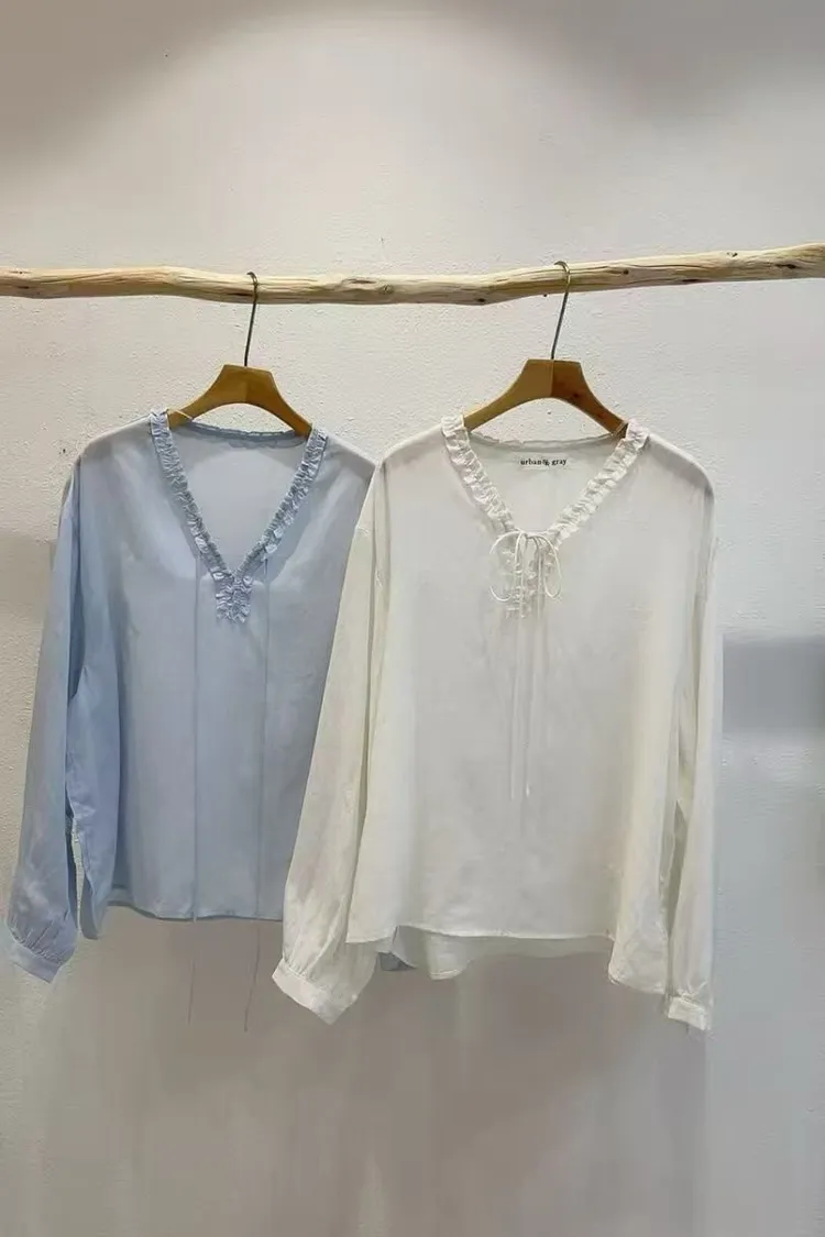 奶油滾邊典雅上衣