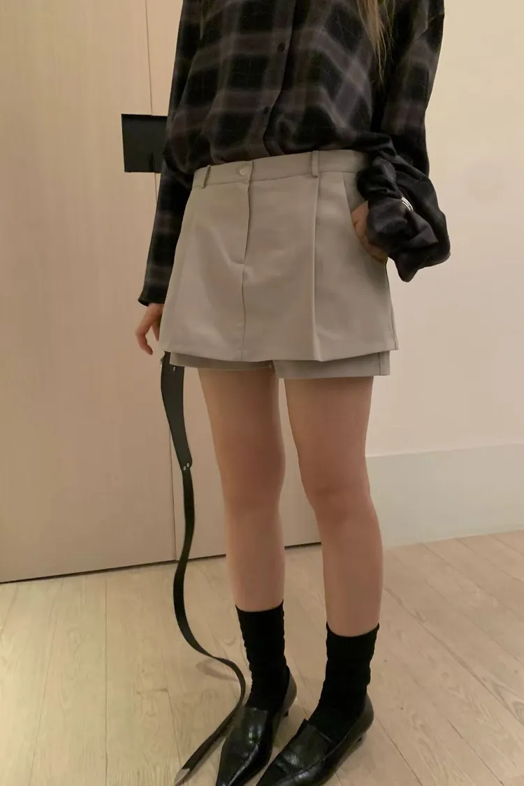 假褲裙口袋雪紡褲