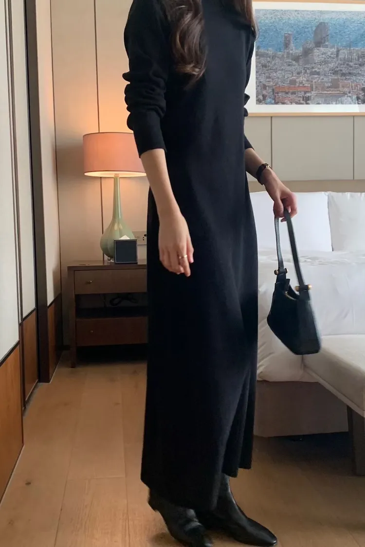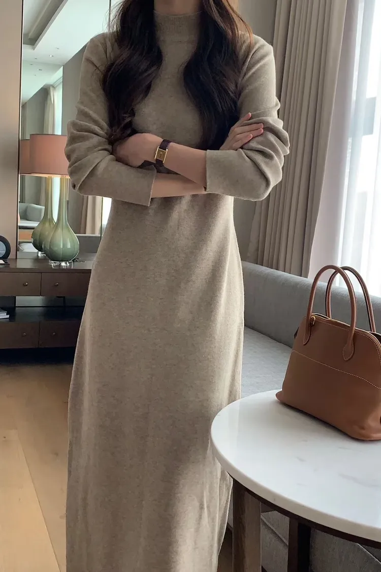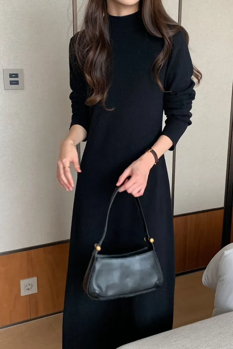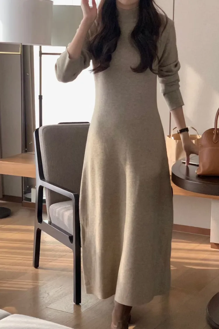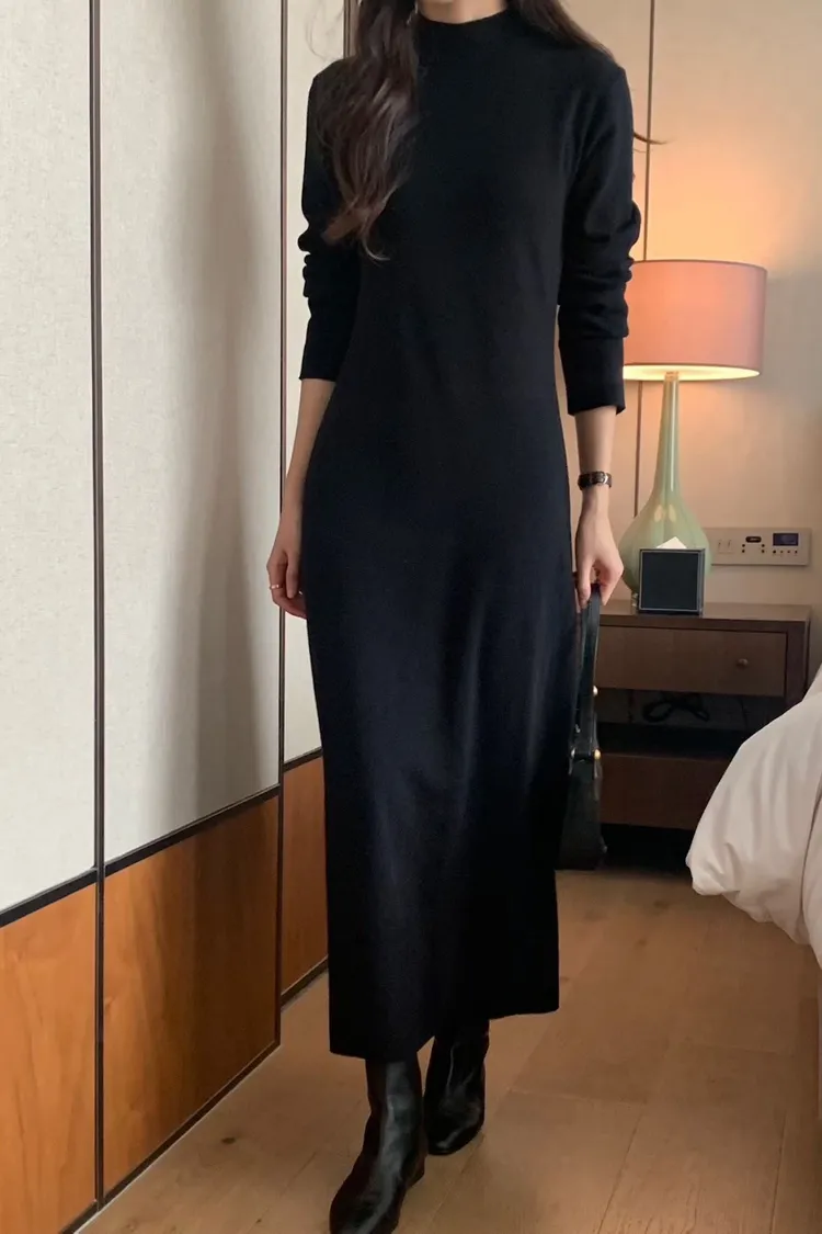 小高領超彈性針織洋裝
