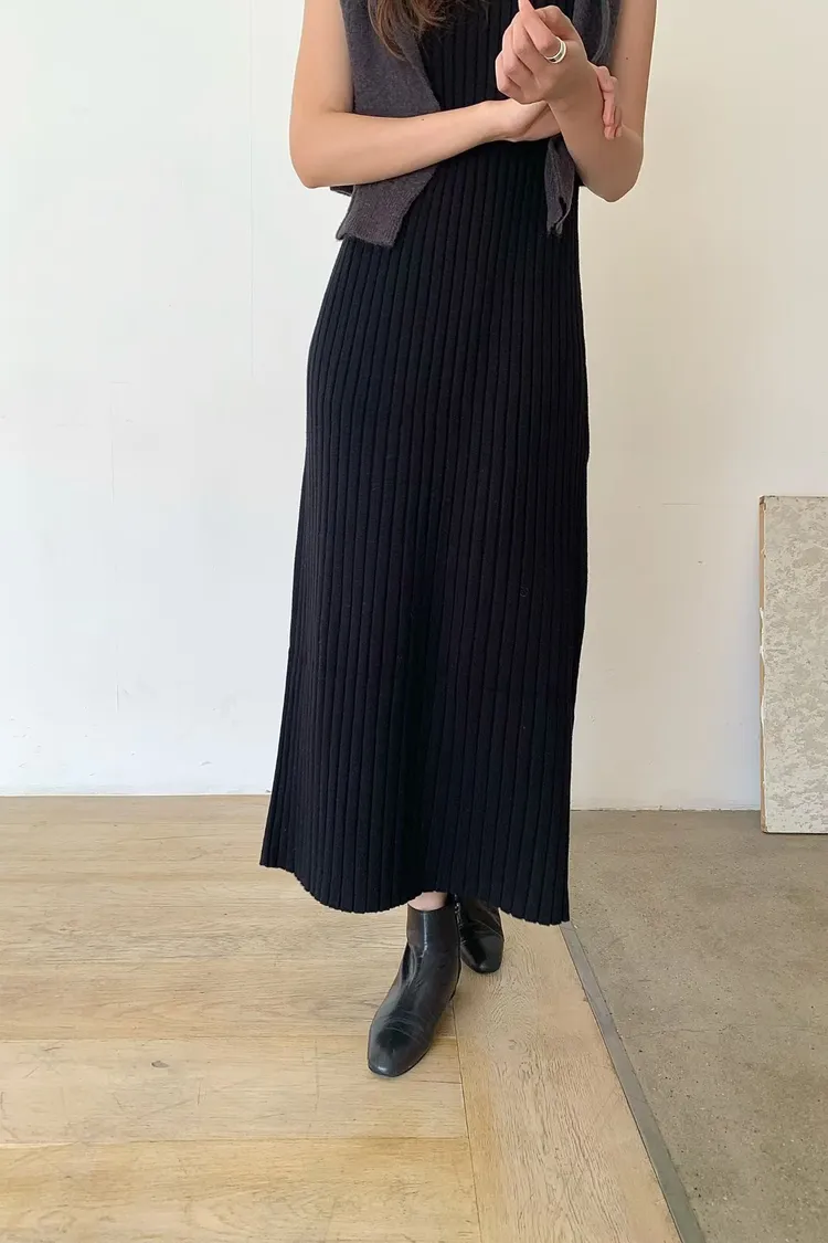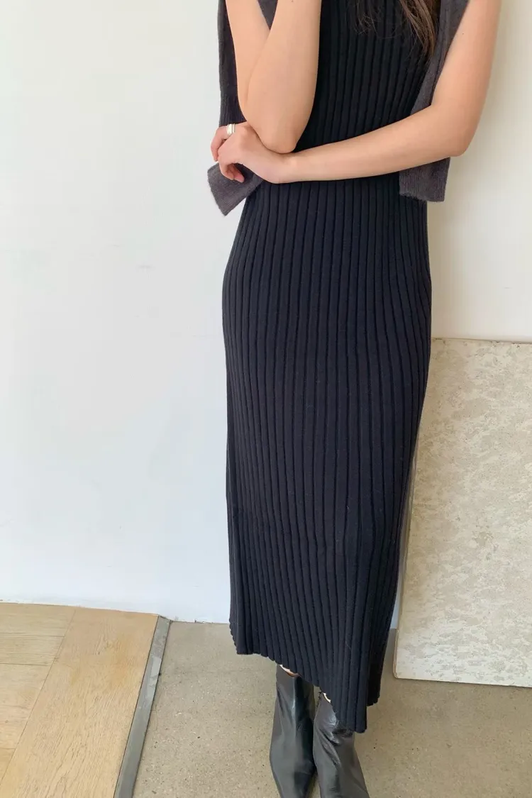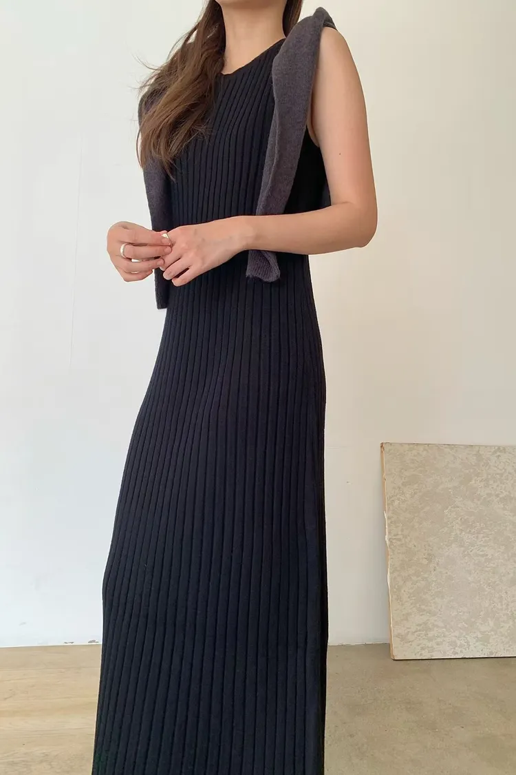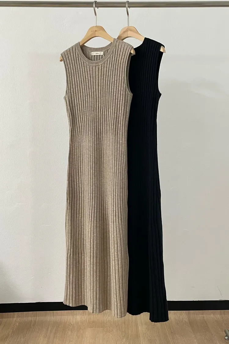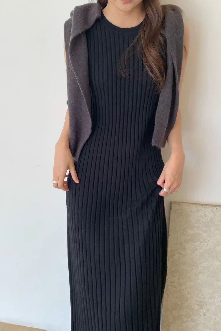 坑條超彈性長洋裝