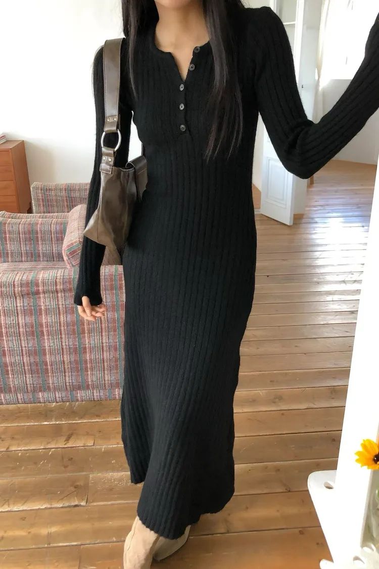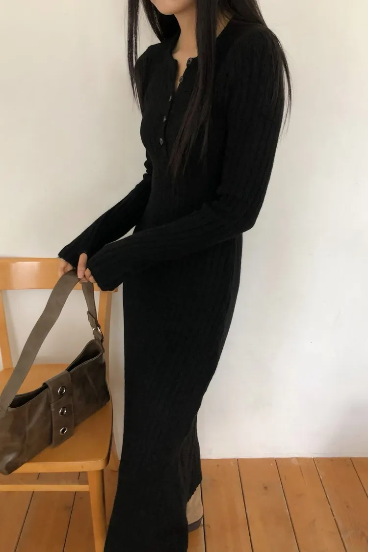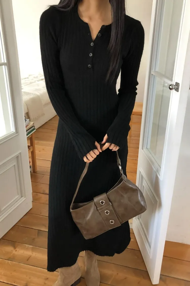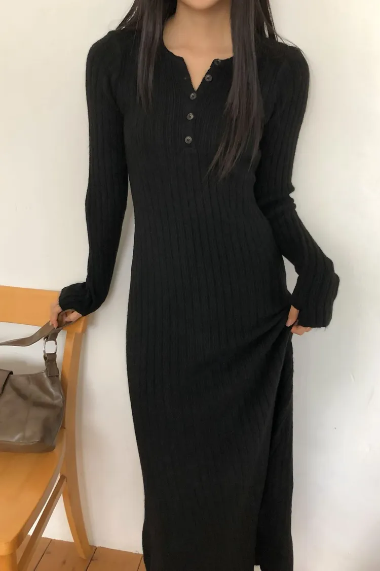 連扣設計臀寬針織連身裙