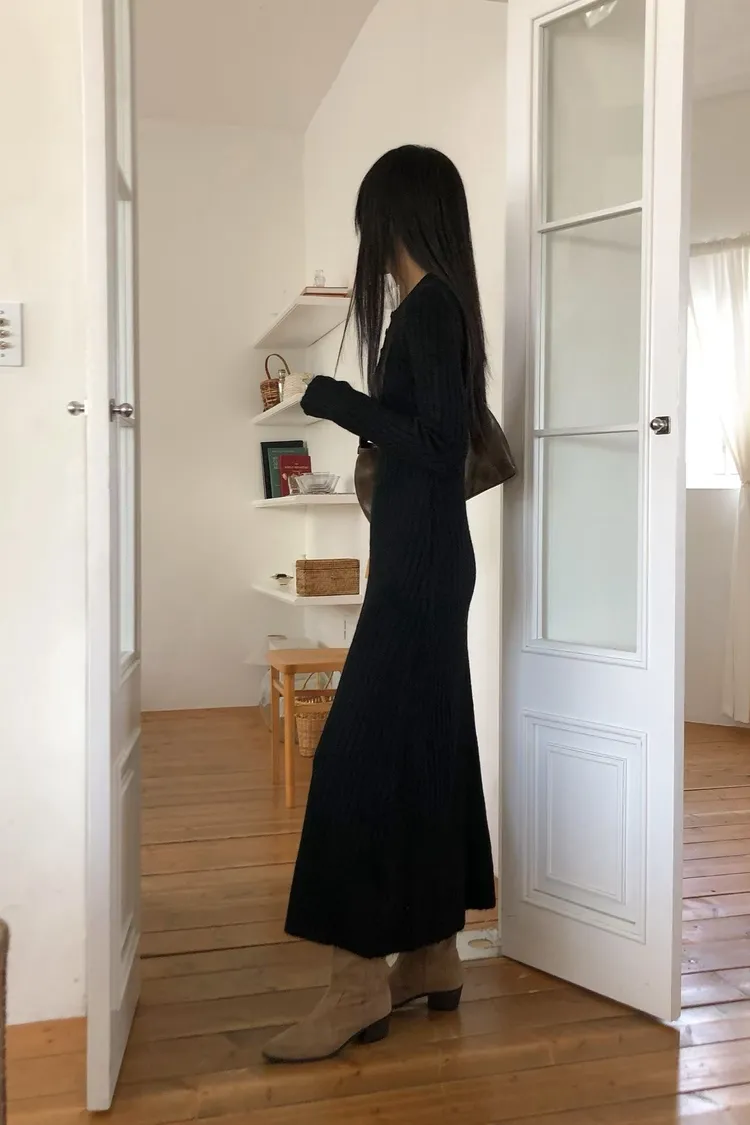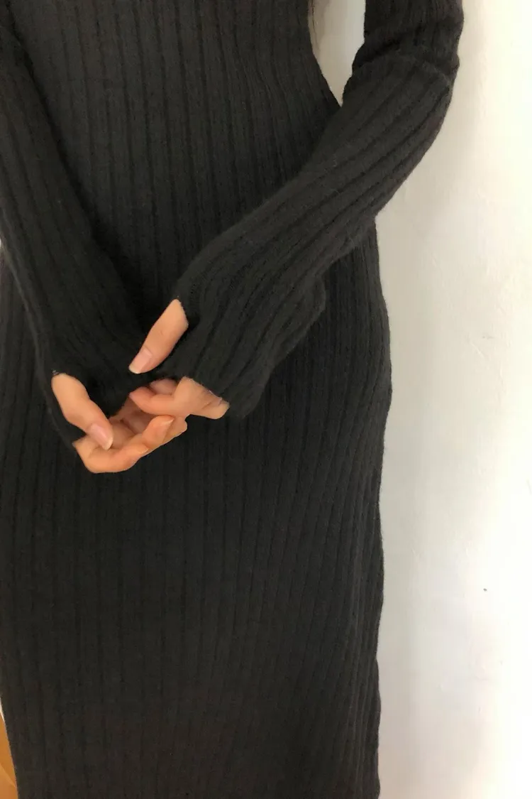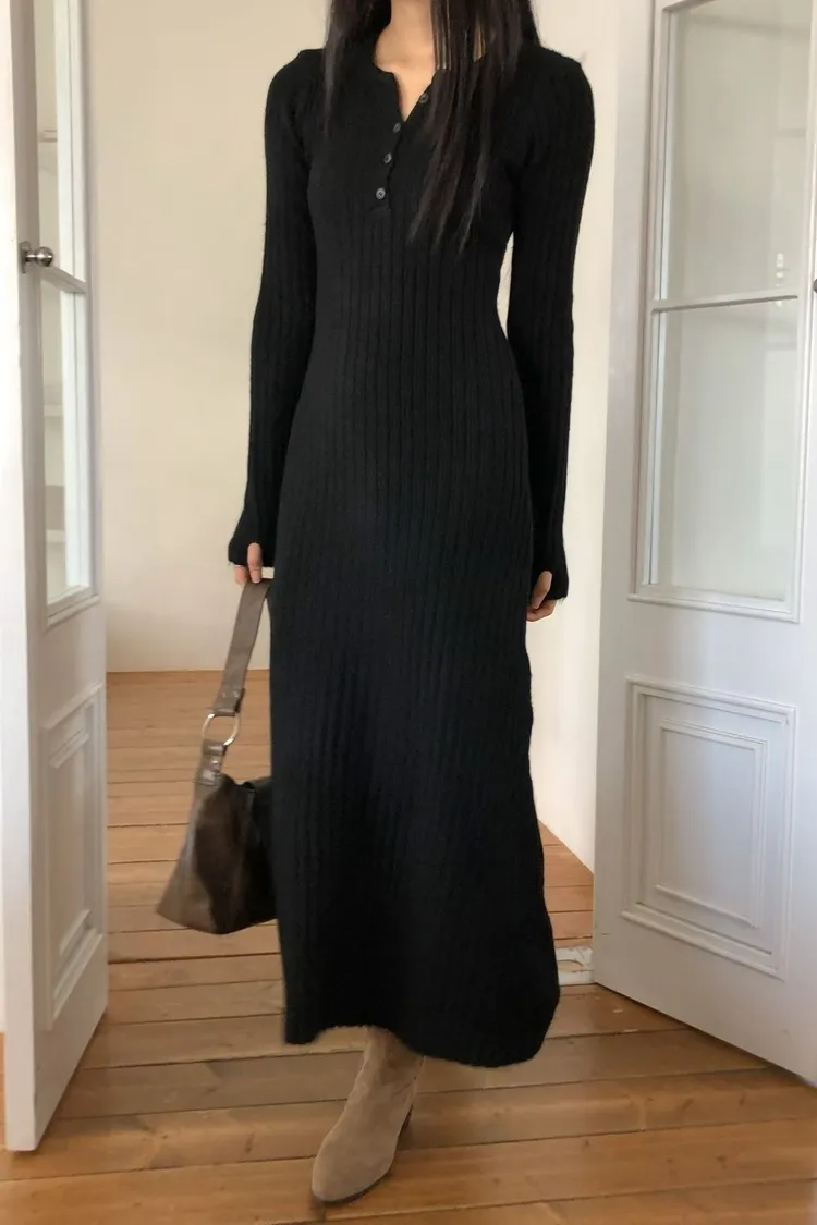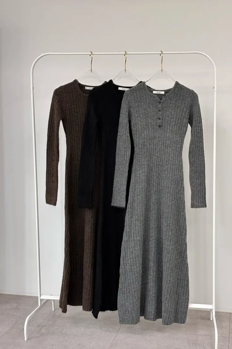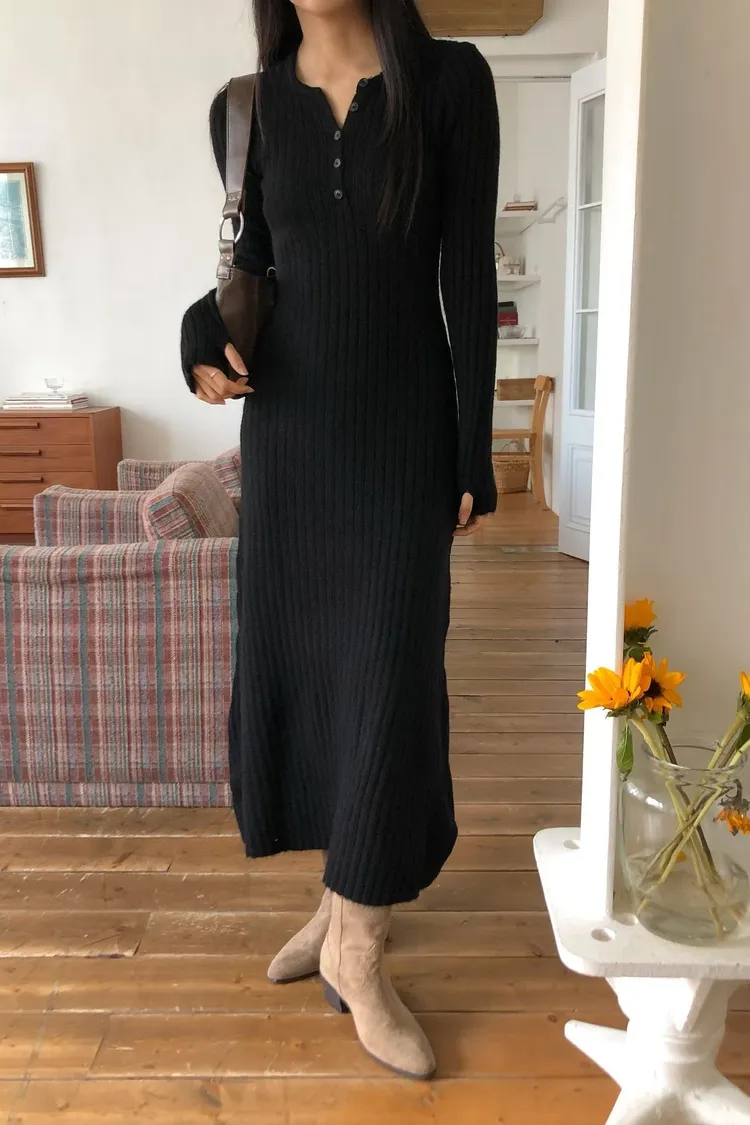 連扣設計臀寬針織連身裙